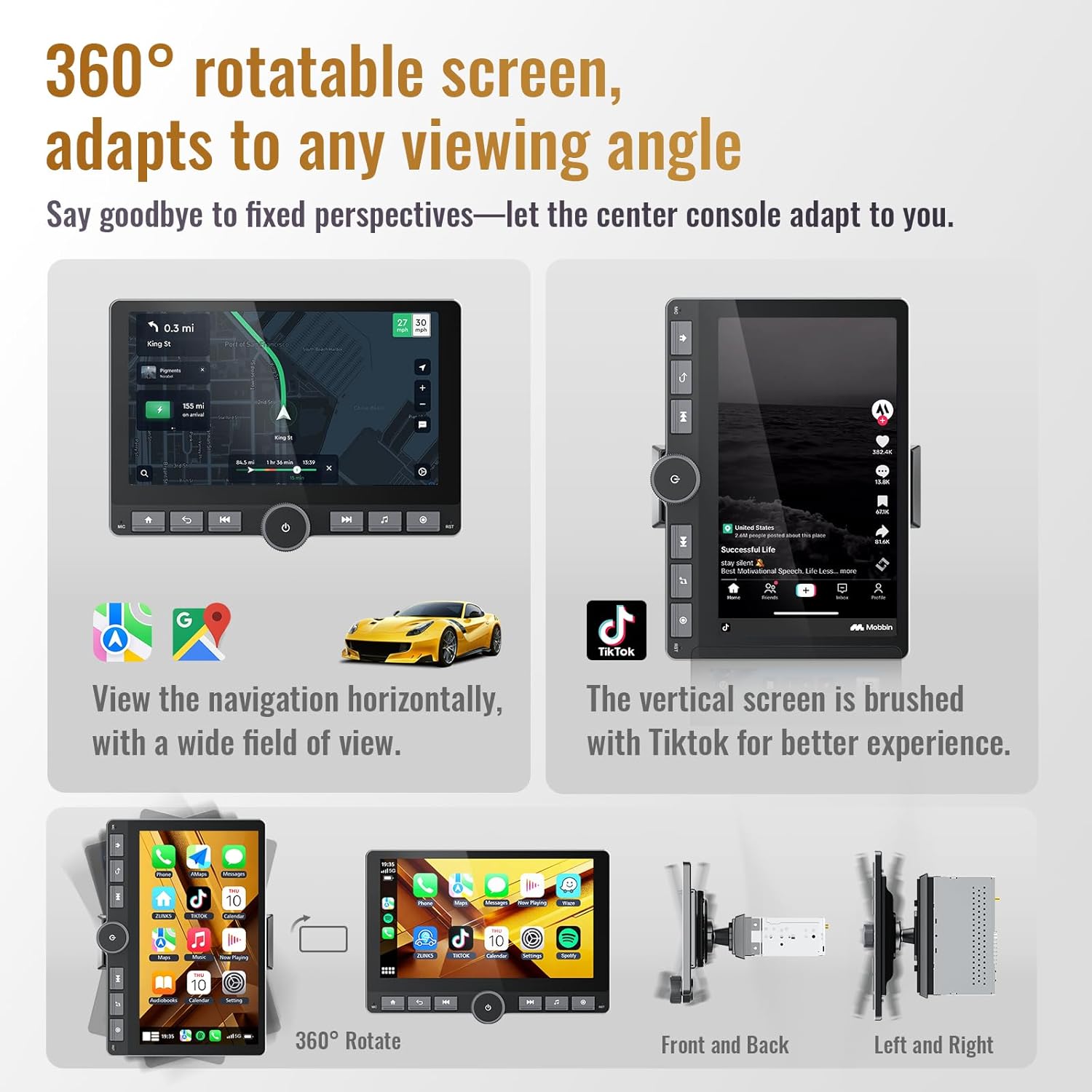 | Other Special Features of the Product | 2GB+64GB, Bluetooth 4.1, External Radio SI4755, GPS Navigation, DSP Sound, AHD Backup Camera, Android System, Rotatable IPS screen, Wireless CarPlay, Android Auto |
