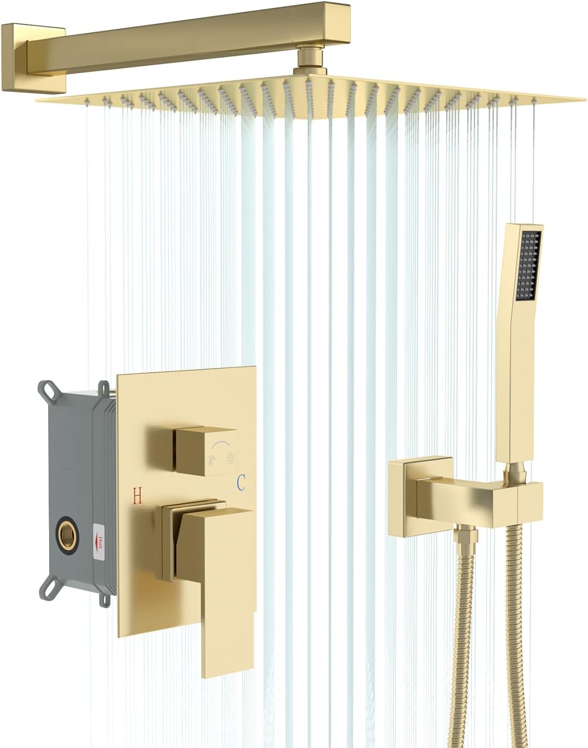 | Included Components | Handle Set, Rain Shower Head, Wall Mount Shower Faucet Set, handheld spray, square rain shower head |