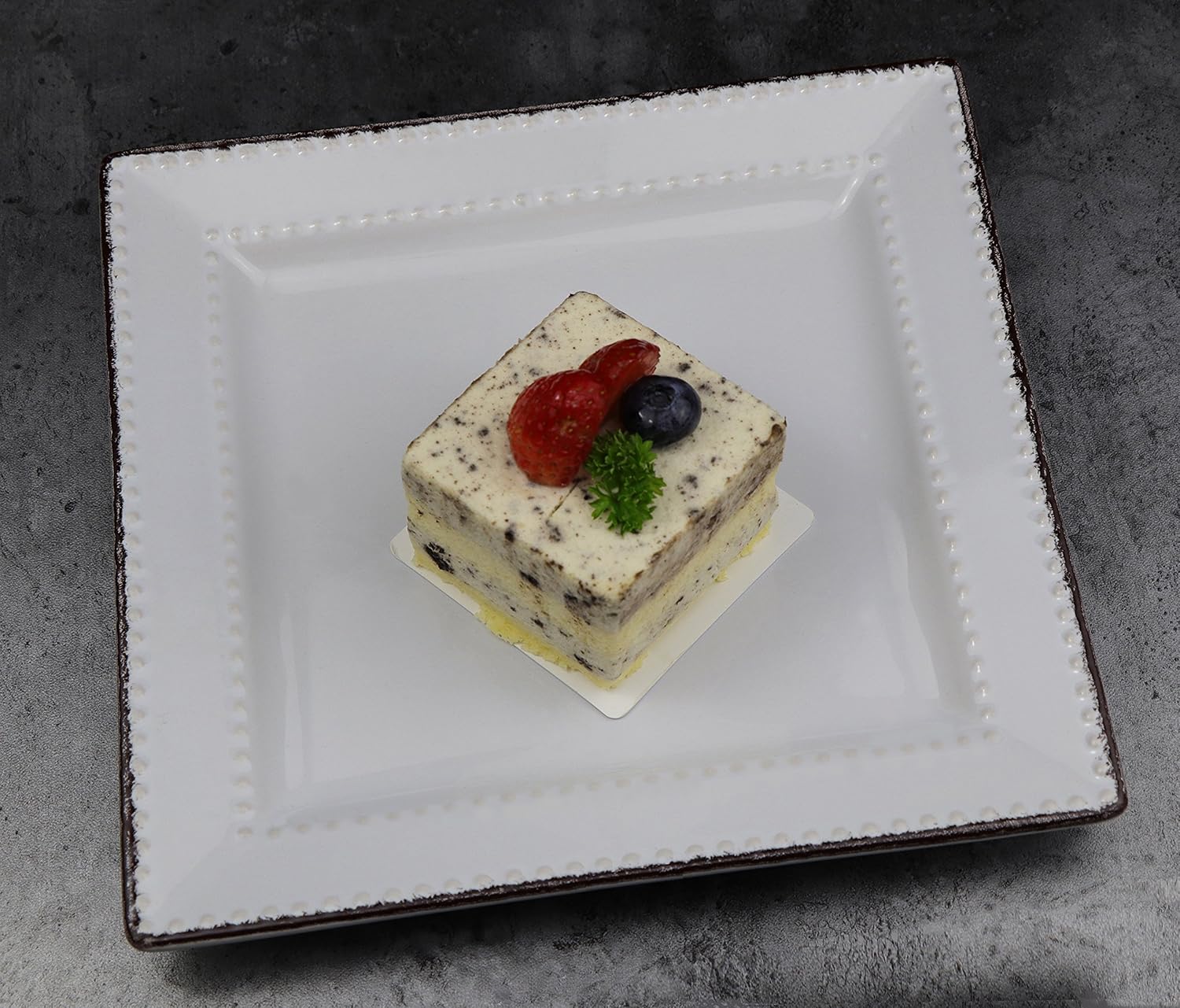 • Modern Square dinnerware with matching beaded border. Edges are brushed with a darker tint to create a fance modern look.