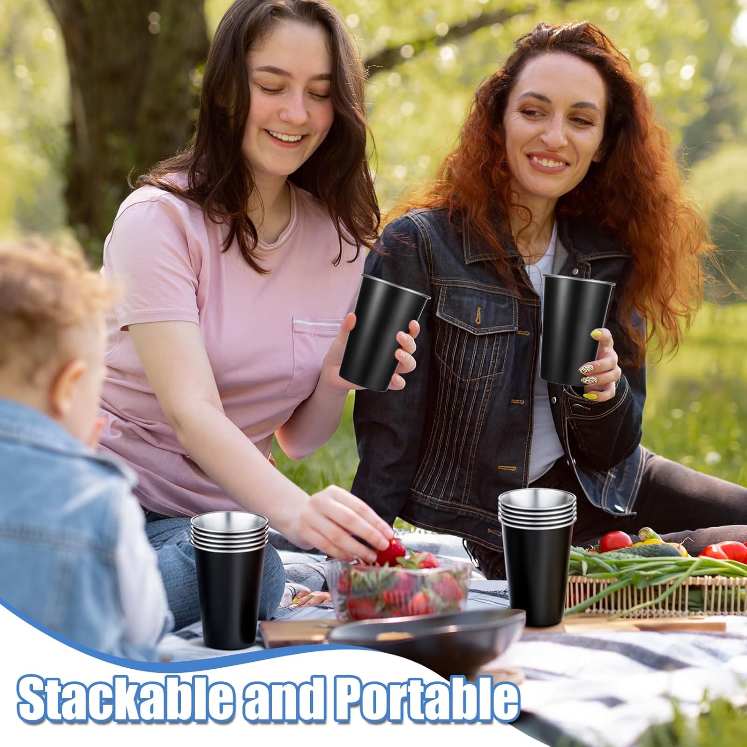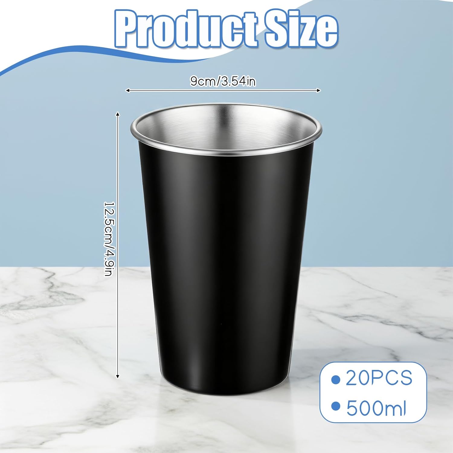 20 Pack Stainless Steel Pint Cups, 16oz/500ml Metal Cups, Stackable Metal Drinking Glasses, Camping Stainless Steel Pint Cup, Water Tumbler for Travel Outdoor Camping(Black)