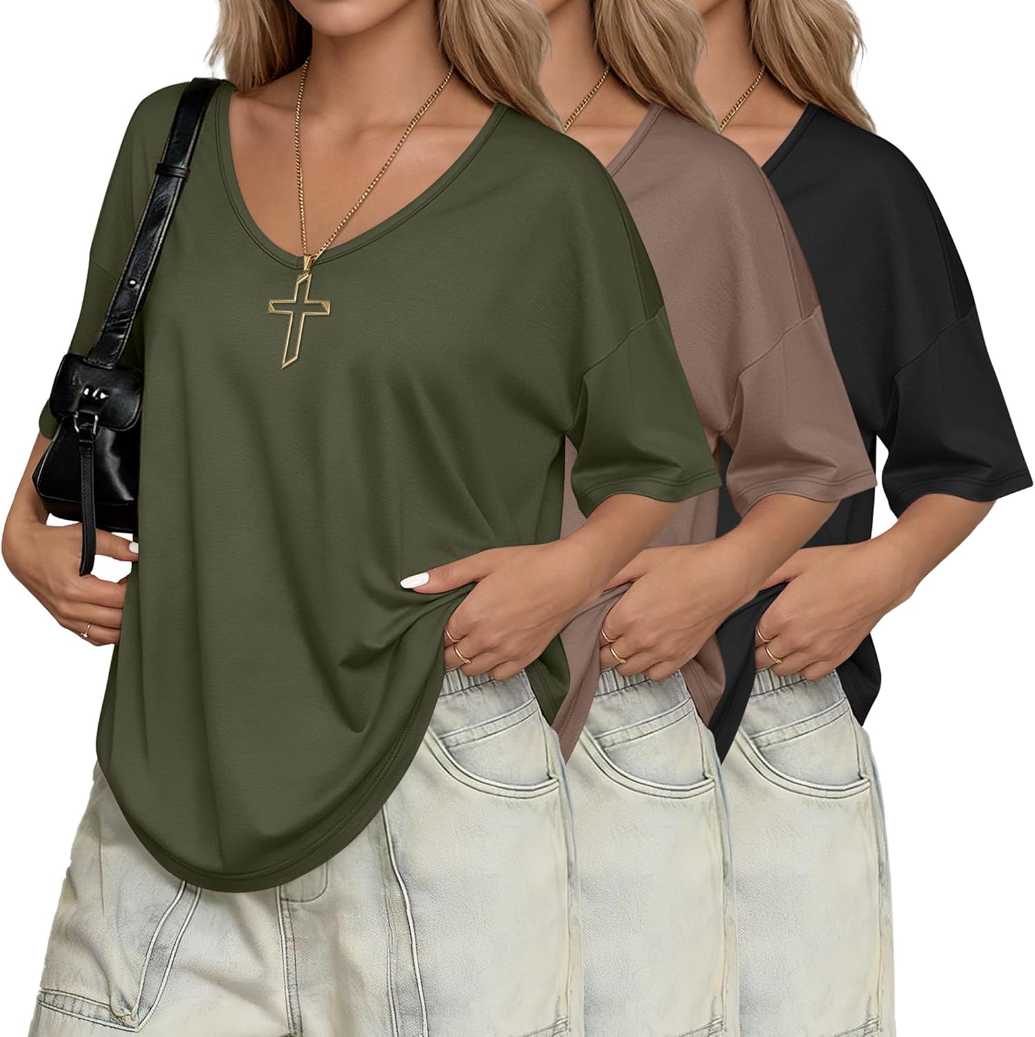 Features: Plain t shirts for women are designed for women's daily and casual lifestyle, and combines comfort with subtle fashion, suitable for daily wear, home leisure, going out, light dating, coffee shop gatherings, casual outings or weekend trips etc Our womens short sleeve tops are available in multiple sizes, please measure your bust and waist according to our size chart and choose the right size of your tees Material: 90% Cotton, 10% Spandex Package includes: 3 X Womens Oversized Tee Shirts Notes: Manual measurement, please allow slight errors on size. The color may exist a slight difference due to different screen displays