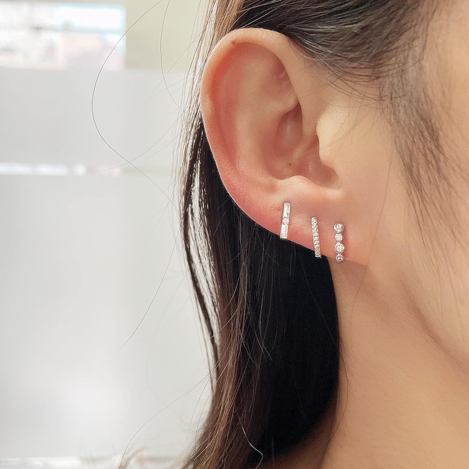 3 Pairs Set Ear Party 1/10 Cttw Natural Diamond Single Stone Square Beaded Mini Huggie Stud Earrings in 925 Sterling Silver