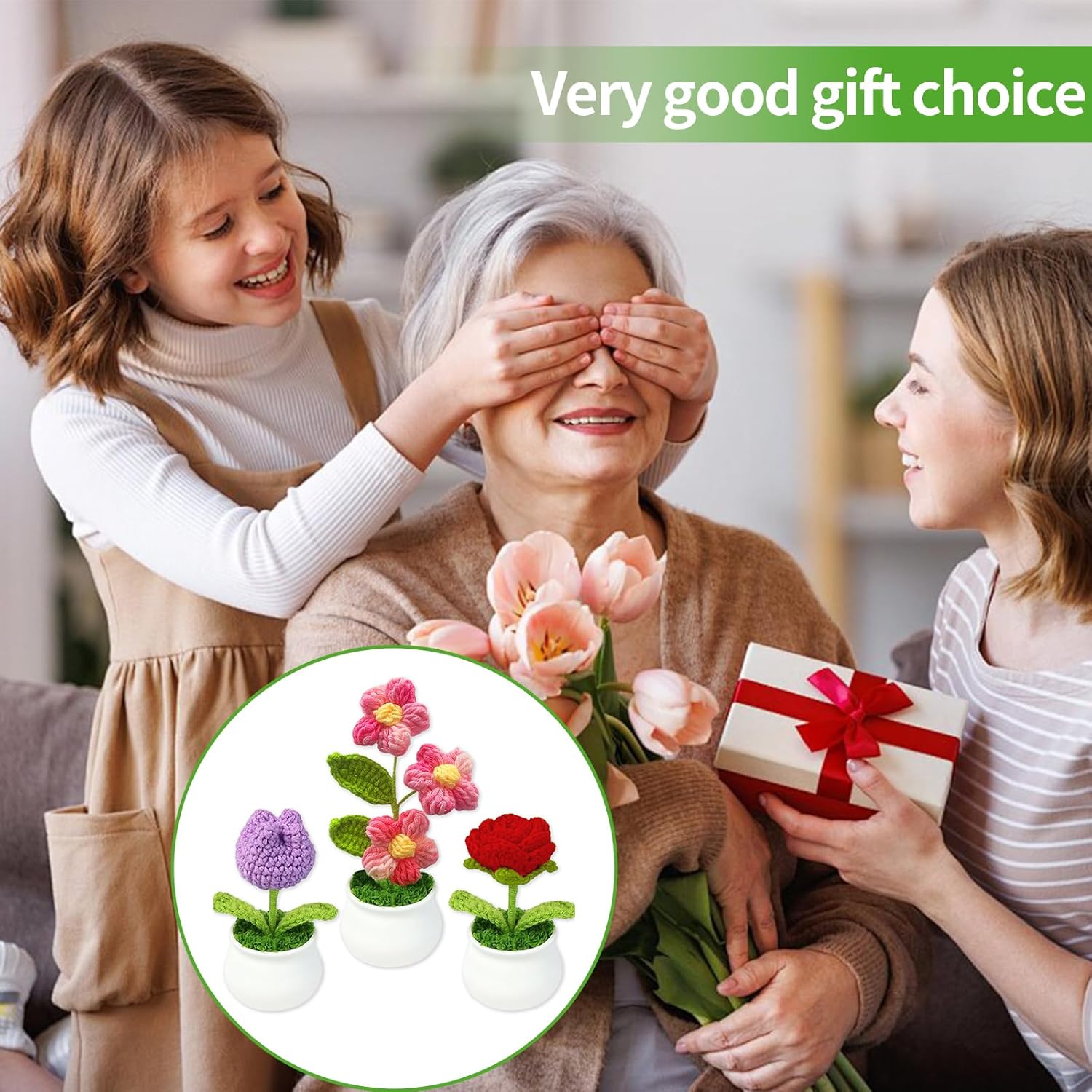 3 pcs crochet flowers potted plant, emotional support crochet handmade knitted flowers pot artificial flower fake tulips for home desktop cars tables decorFEATURES:1.You will receive 3 piece of positive Double headed knitted flowers crochet gifts, making you feel strong, happy.2.Our soft crochet gifts for crochet lovers offer the warmth and comfort of live plants without the upkeep. 3.Our positive crochet plant is a distinctive decoration for office desk, bedroom, home, dormitory, classroom and so on, bringing you happiness and warmth.SPECIFICATION:Product size: 14 x 6 x 6cmProduct weight: 40gPack size: 22 x 17.5 x 6.3cmPackaging weight: 138gColor: PinkMaterial: Cotton ThreadScope of delivery: 3 x Crochet Flowers