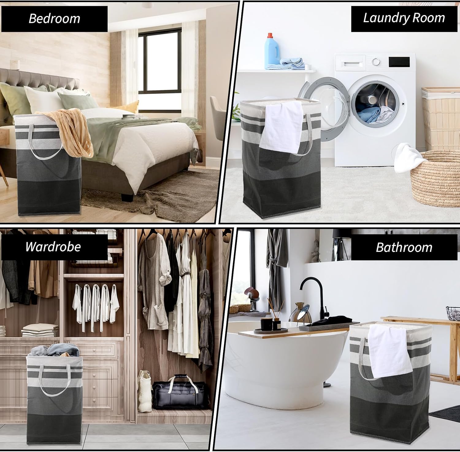 Welcome to our store!Features:Extra large laundry basket is made of high-quality Polycotton canvas. The water-resistant coating inside the basket keeps clothes dry and is easy to clean - just wipe with a damp sponge or cloth.The laundry basket can be easily folded for compact storage, making it perfect for home, campus, camping, apartments, hotels and shopping.Specifications:Material: PolycottoncanvasColor: GraySize: 15.7 x 11.8 x 23.8 inchesCapacity: 75 LPackage includes:6 Pcs x Laundry Hamper FreestandingNotes:Manual measurement, please allow slight errors on size.The color may exist a slight difference due to different screen displays.