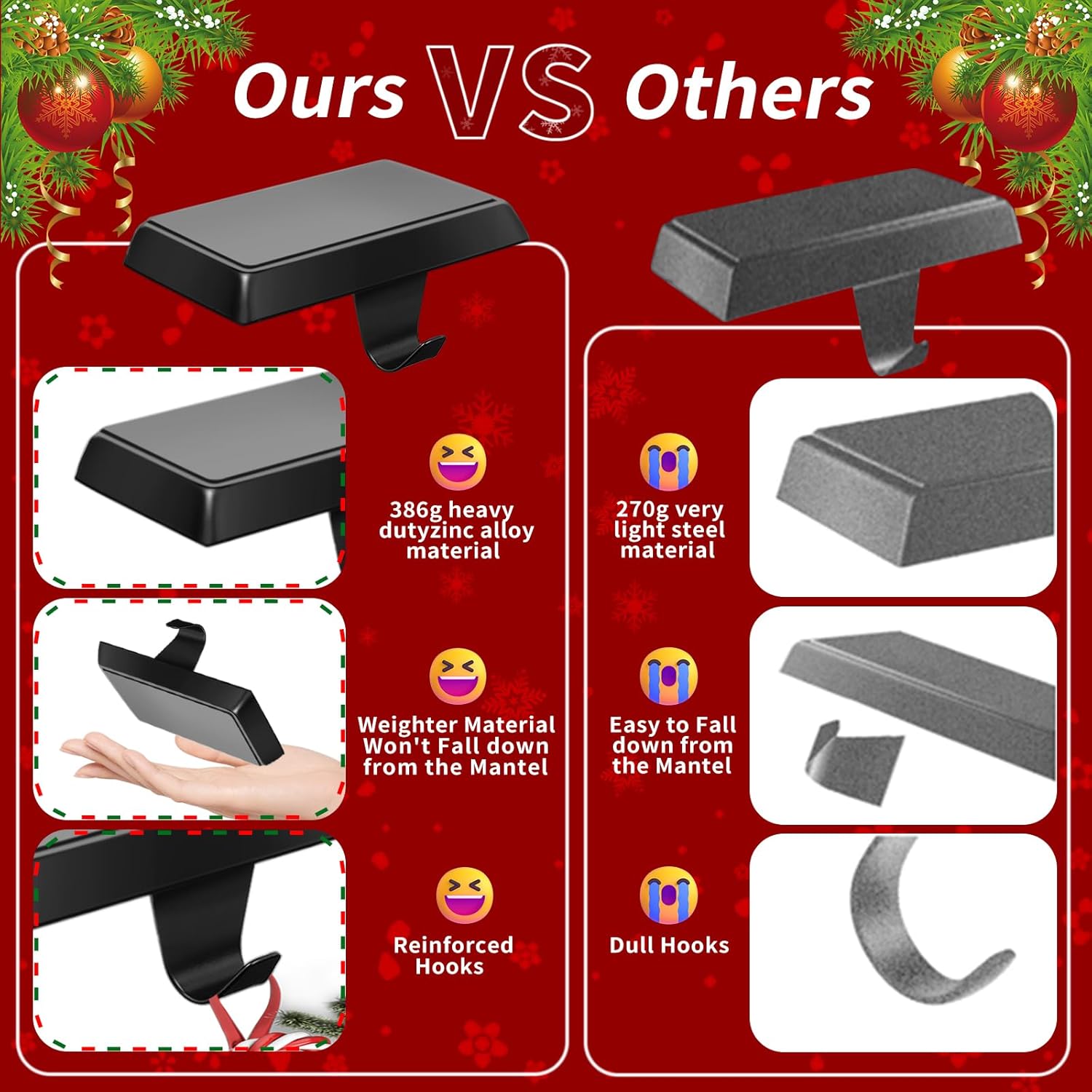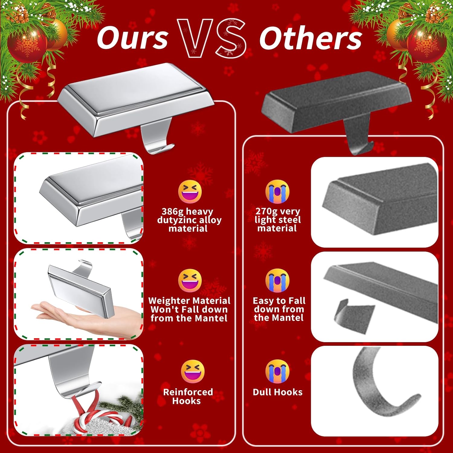 | Recommended Uses For Product | Temporary hanging of lightweight items such as stockings, bags, decorations, and other festive items during various occasions and celebrations |