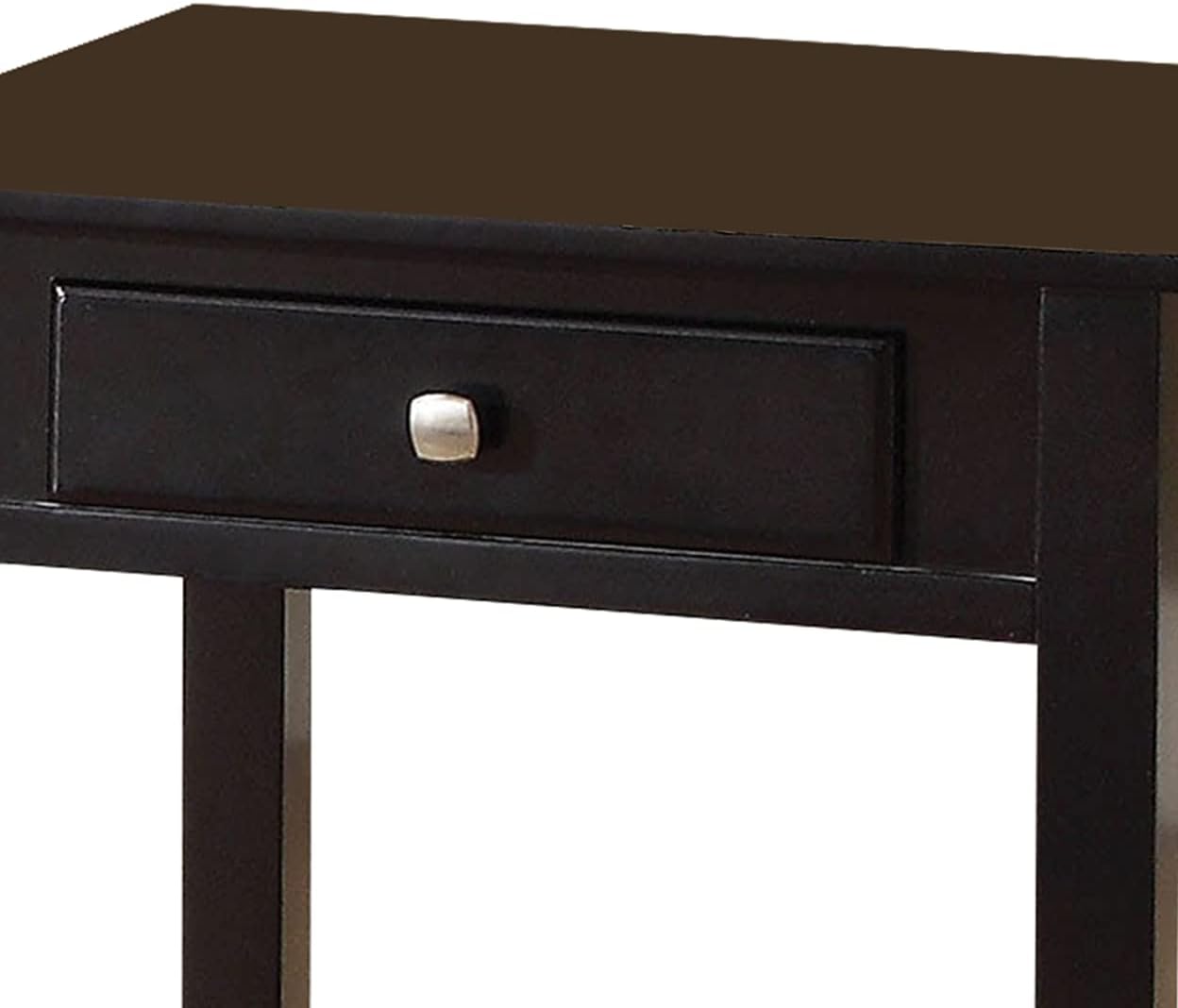 ACME Furniture 82952 Malachi end table, Black. 1 drawer with side metal glide. Wooden top & apron. Open storage: bottom shelf. The country of Origin of the product is China.