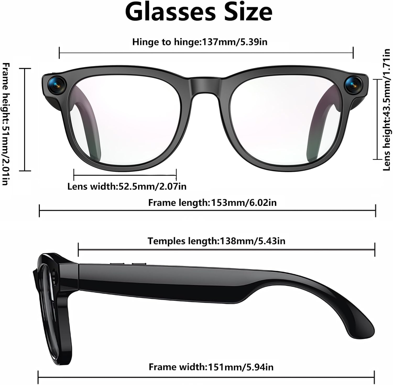 • 【1080P HD Video with EIS Stabilization】:These smart glasses with camera and bluetooth equipped with a HD 8MP sensor for crisp 1080P HD recording and 32MP photo taking. Electronic Image Stabilization (EIS) ensures smooth, professional-quality footage of your adventures, sports, and memorable moments