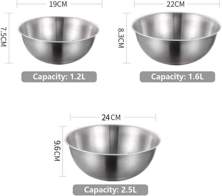 This mixing bowls is made of stainless steel, making them sturdy and durable. The serving bowl is suitable for serving both hot soups and cold drinks. They can be used by the whole family as serving bowls, food preparation bowls, and ice cream bowls. This food storage bowl is suitable for various occasions, such as restaurants, home kitchens, hotels, banquets, and outdoor picnics.Specifications:Name: Stainless Steel Mixing BowlsMaterial: Stainless SteelaPackage includes:3 x Stainless Steel Mixing BowlNote:1. Due to manual measurement, please allow for size differences, thank you.3. Due to the difference between different monitors, the actual color may be slightly different from the color shown in the pictures.