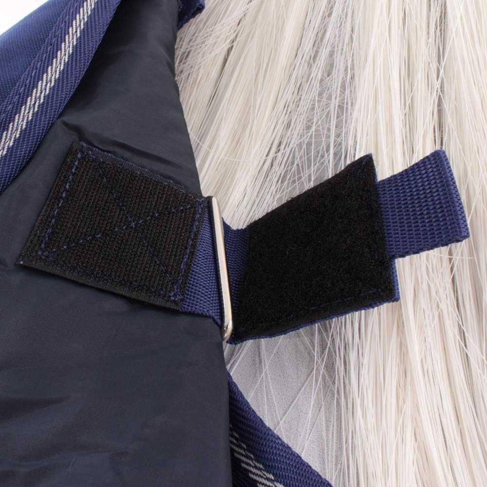 Horseware Amigo Hero 900 Plus Turnout Sheet Constructed of strong and durable 900 Denier polyester outer with a shine enhancing polyester lining, this turnout sheet sports a classic front closure that is double fastened for added security. Front leg arches provide a unique design to maintain freedom of movement. The detachable hood provides flexibility for when your horse needs full coverage. Features: Waterproof and breathable Classic front closure Front leg arches Two cross surcingles Tail strap Item Specifications: Material: 900D Polyester Fill: 0 gram/No Fill Weight: Lightweight Fitting Your Horse's Blanket: The fit of your blanket is extremely important to the comfort of your horse. An improperly fitted blanket can cause rubbing and slippage. Horseware(R) blankets are Euro-cut, and the sizes do not run the same as other manufacturers' blankets. Measuring Instructions: Stand your horse as square as possible, and measure from the center of chest around side of the body to the point of the horse's rump just before the tail. If your horse ends up measuring between sizes, always round up to the next size to ensure full coverage. Washing Instructions: To keep your blanket as comfortable as possible for your horse and to maximize the blanket's life, it is recommended that you clean your blanket annually. First, remove excess dirt from the outside of the blanket with a brush and hose. The blanket can then be washed either by hand, or on a delicate cycle with cool water in a commercial washer. Use only very mild soap. When the blanket has been washed, allow to drip dry and ensure that the blanket is thoroughly dry before storage. Do not put your horse's blanket in the dryer or wash with hot water. Do not store your horse's blanket if damp or wet. This will damage the waterproof coating and void any warranties. Horses Turned Outside Without Shelter: Horseware(R) Turnout Sheet and Blanket materials are waterproof and designed to keep your horse dry. However, if your hors