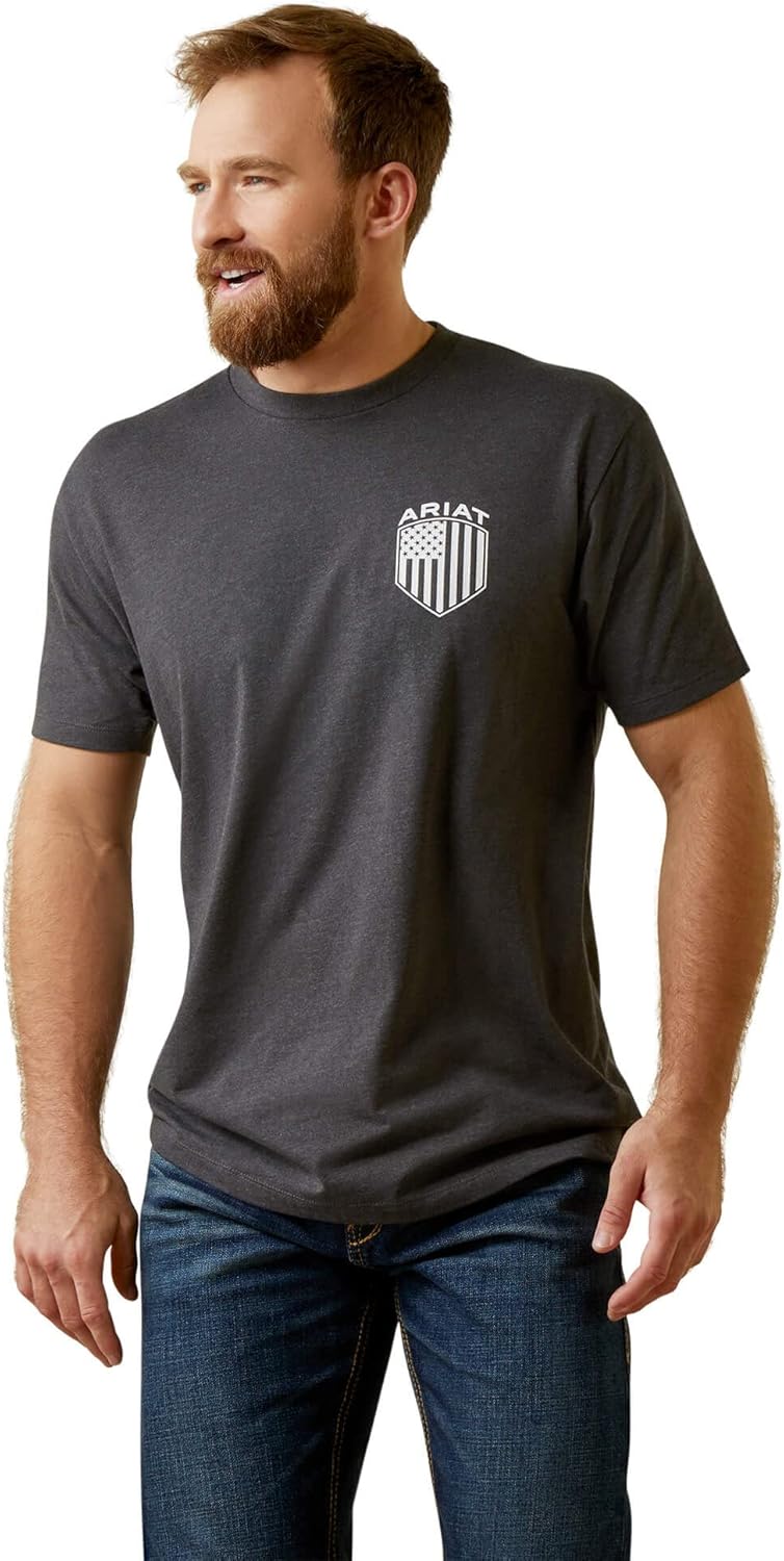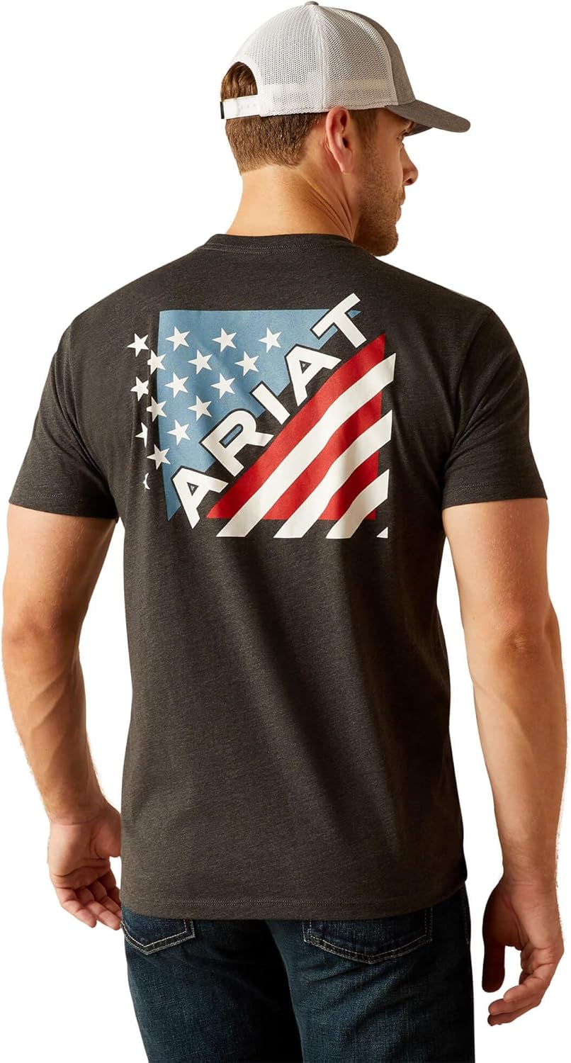 Rep your favorite brand with this super-soft graphic tee. Featuring an Ariat logo across the chest and a flag graphic on the arm, it's an easy standby that takes the guesswork out of what to wear.
