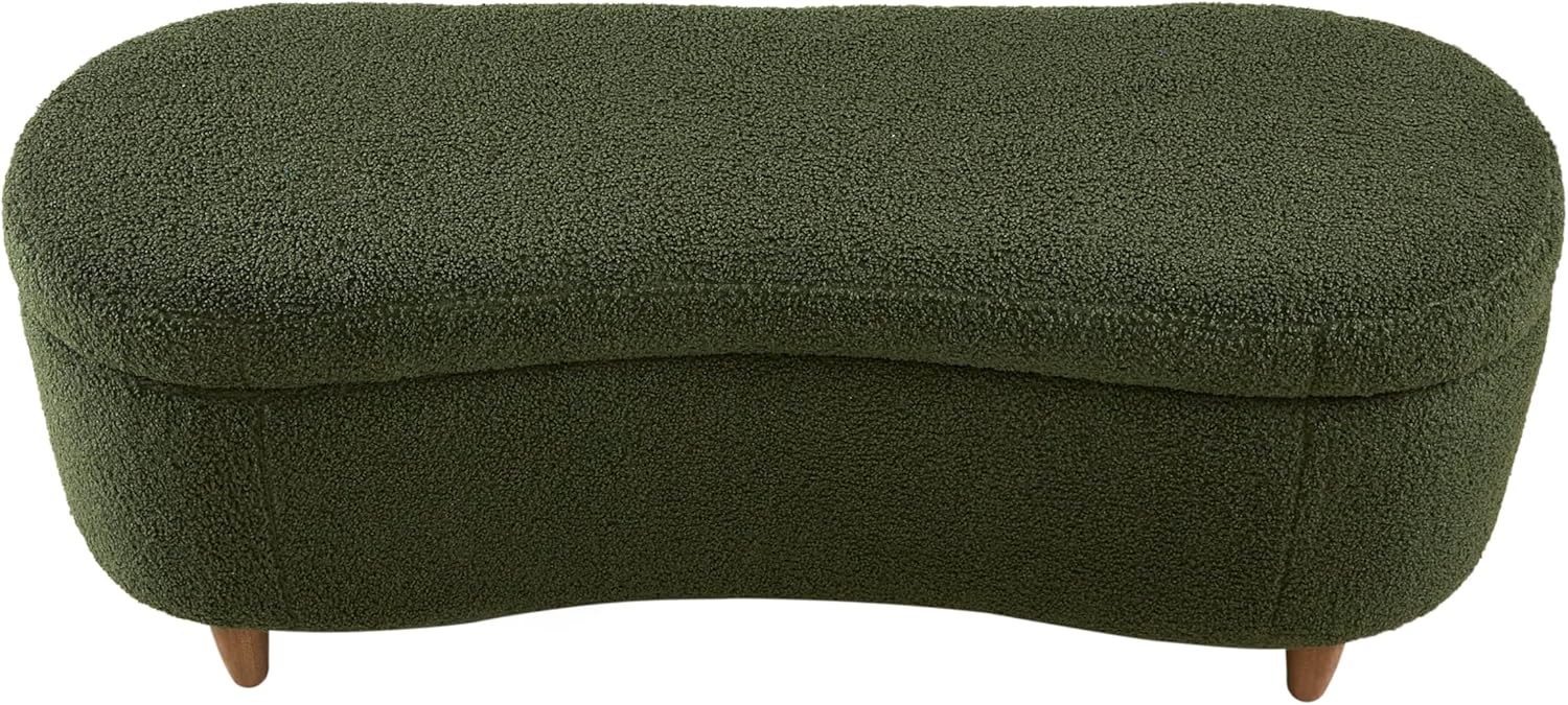 Add cozy texture and stylish function to your space with the Bailey Storage Bench from INK+IVY. Upholstered in soft bouclé-style fabric, this bench features a curved front and straight back so it fits neatly against a wall or bed. A flip-top lid opens to a spacious interior with ventilation holes for airflow and soft-close hinges for added safety. The padded seat offers occasional seating, making it perfect for bedrooms, entryways, or living rooms. Solid wood legs provide sturdy support with a warm, natural finish. Easy to assemble with simple leg attachment. Style and store with Bailey today.