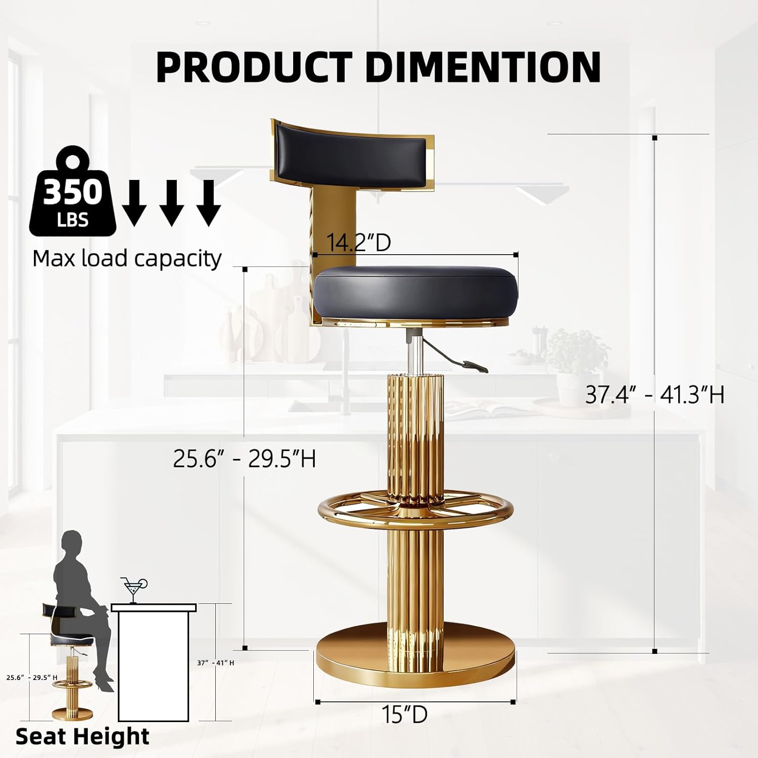| Size | 15"W x 15"D x 41.3"H with 14.2" Seat Width |