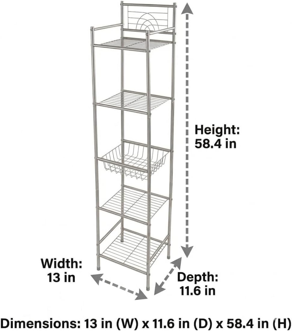 | Model Name | Bath Bliss 5 Tier Storage Shelf in Stain Nickel, Freestanding Shelving, Bathroom Organization, Towel & Toiletries Organizer |