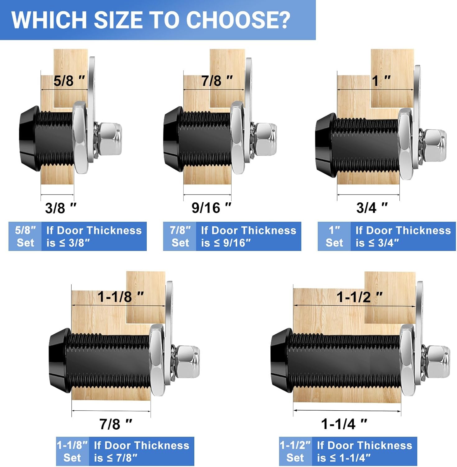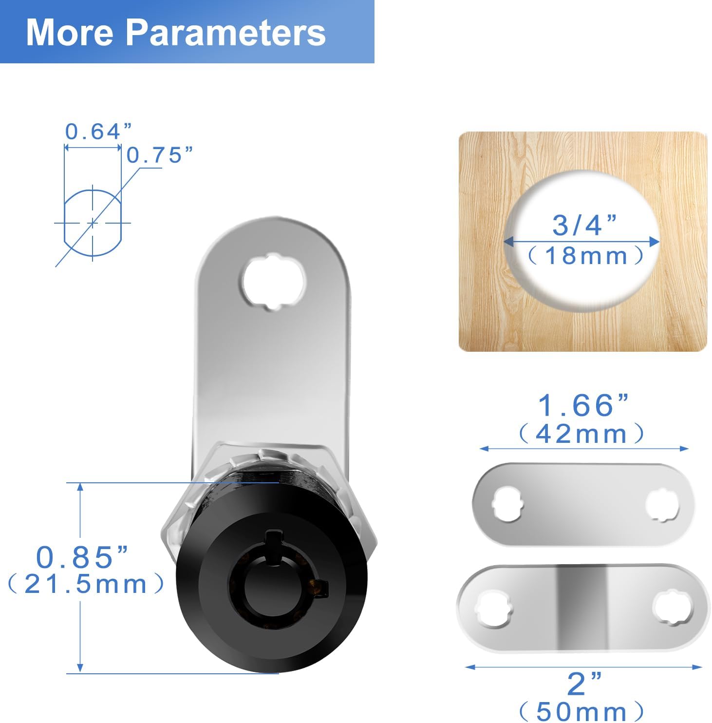 Sissinda RV Storage Door Locks specialize in keeping your valuables safe and private, help you travel worry free with loved ones! Our RV Compartment Lock body is made of high-quality zinc alloy die-casting and matte black finish, which is strong, rust-proof and durable.Can be widely used as replacement locks in RVs, campers, desks, drawers, cabinets, tool boxes, etc.Specification: Material: Zinc Alloy, Chrome Finish Rotation Angle: 90 degreeFor Door Thickness: Less than 1-1/4 inch( about 32mm) Mounting Hole Diameter: about 3/4 inch (about 19mm)Max. Latching Distance: 1-1/2 inch(40mm)Offset Cam Length: 2inch ( 41mm) Straight Cam Length: 1.66 inch (42mm) Easy to Install: Can be mounted to metal or wood, cabinet/drawer doors in multiple positions (at the 3, 6, 9, or 12 o'clock position with a 90 degree turn)by adjusting the installation direction of the positioning piece and lock plate. Package Included: 6 x Tubular Cam Locks sets , 12 x Keys, (Keyed Alike), Key alike means one key is able to open all the locks in the same set. 100% Satisfaction Guranteed: If you are not satisfied with the product, we provide a full money back guarantee. If you need any support, please feel free to contact us. Customization Service Provided:Currently We provide 5/8”, 7/8”,1”,1-1/8” and 1-1/2” tubular cam locks with Chrome&Black surface finish. And we also provide Custom Services