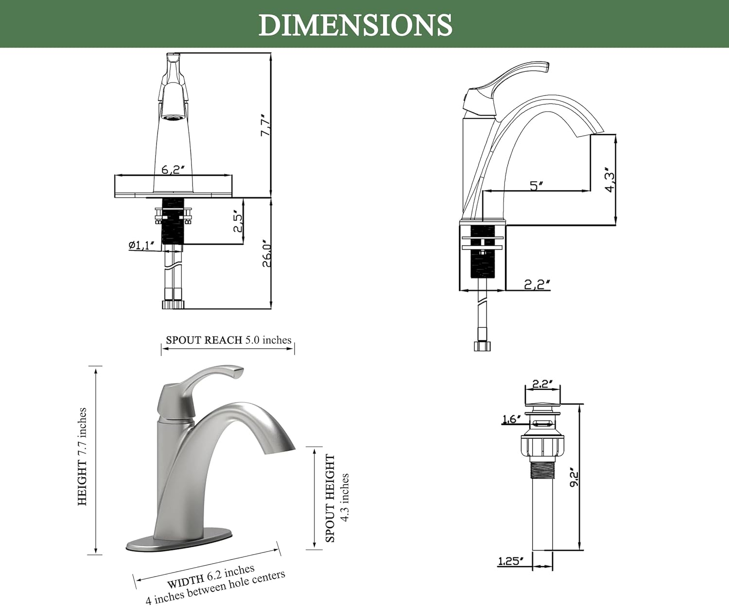 | Included Components | Aerator, Deck Plate, Drain, Instruction Manual, Water Supply Hoses, 1/2" Outlet Adapters |