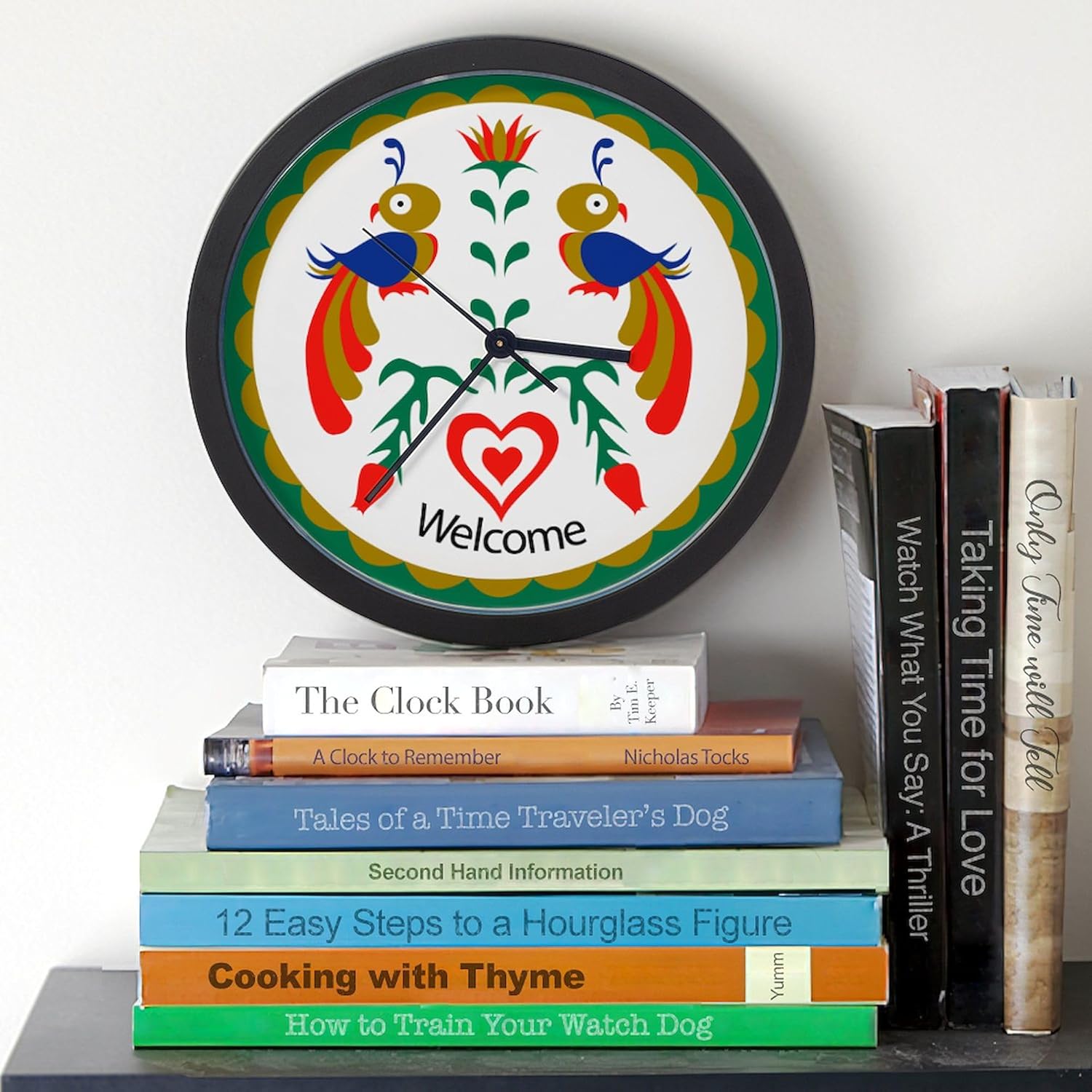 Upgrade your space with these stylish modern clocks, measuring approximately 9.5 inches in diameter. Crafted with a sturdy black plastic case and a clear plastic lens, each clock showcases professionally printed designs highlighting unique decorative or novelty artwork. These battery-operated analog clocks (battery not included) feature precise quartz movement, ensuring you never miss a beat. They are the perfect combination of function and flair, making them an ideal addition to your home, kitchen, or office. Plus, they make a delightful gift for any occasion that will impress!