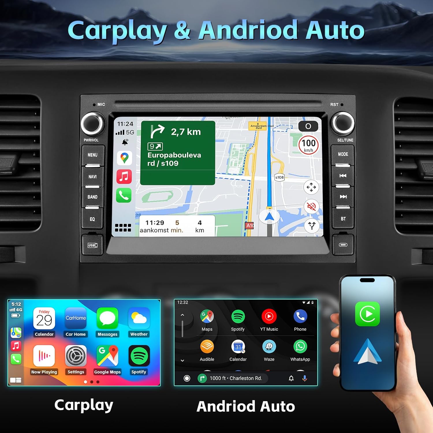 | BuiltIn Media | Car radio stereo with Apple Carplay & Android Aotu, Backup camera, Touch Screen |