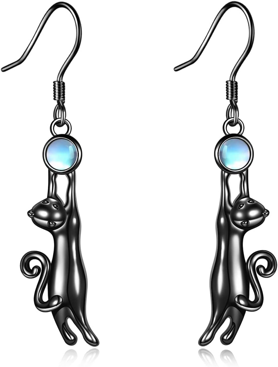 CRMAD Black Cat Earring for Women Sterling Silver Cat Dangle Earrings for Women