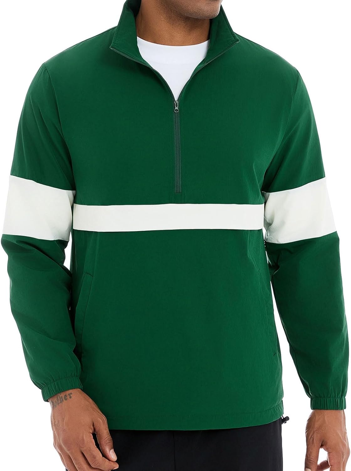 | Fabric Type | A nice quarter zip pullover, windbreaker/light jacket type material:90% Nylon and 10% Spandex |