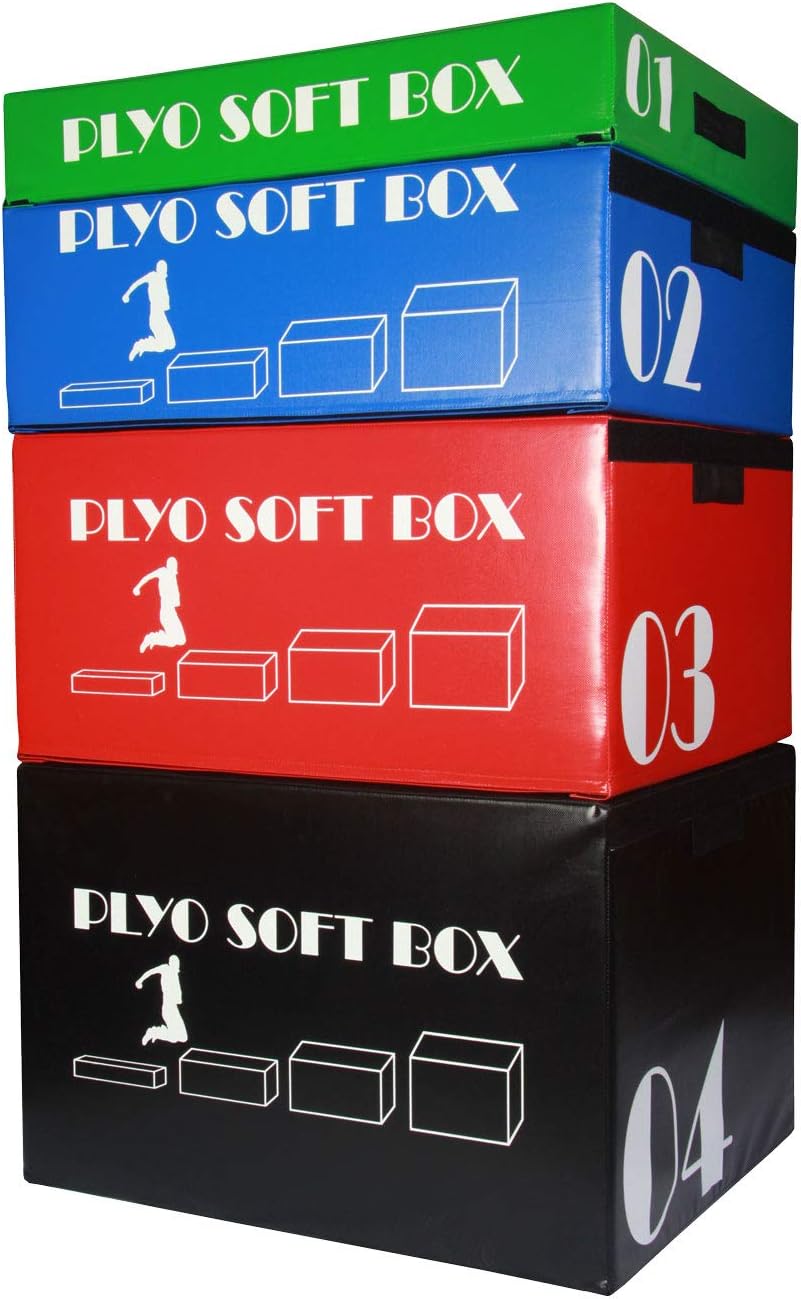 Fitness First brings you a multi sized workout dream. Large landing surface (30" x 36") stackable soft plyo boxes come in 4 different sizes including 6, 12, 18 or 24 inch heights. Made of soft durable padded foam to help protect the safety of the athlete using them. It will protect your knees and joints and shins in case of missing the jump. Stackable and takes up minimum space. Made with a pvc cover to easily wipe down.