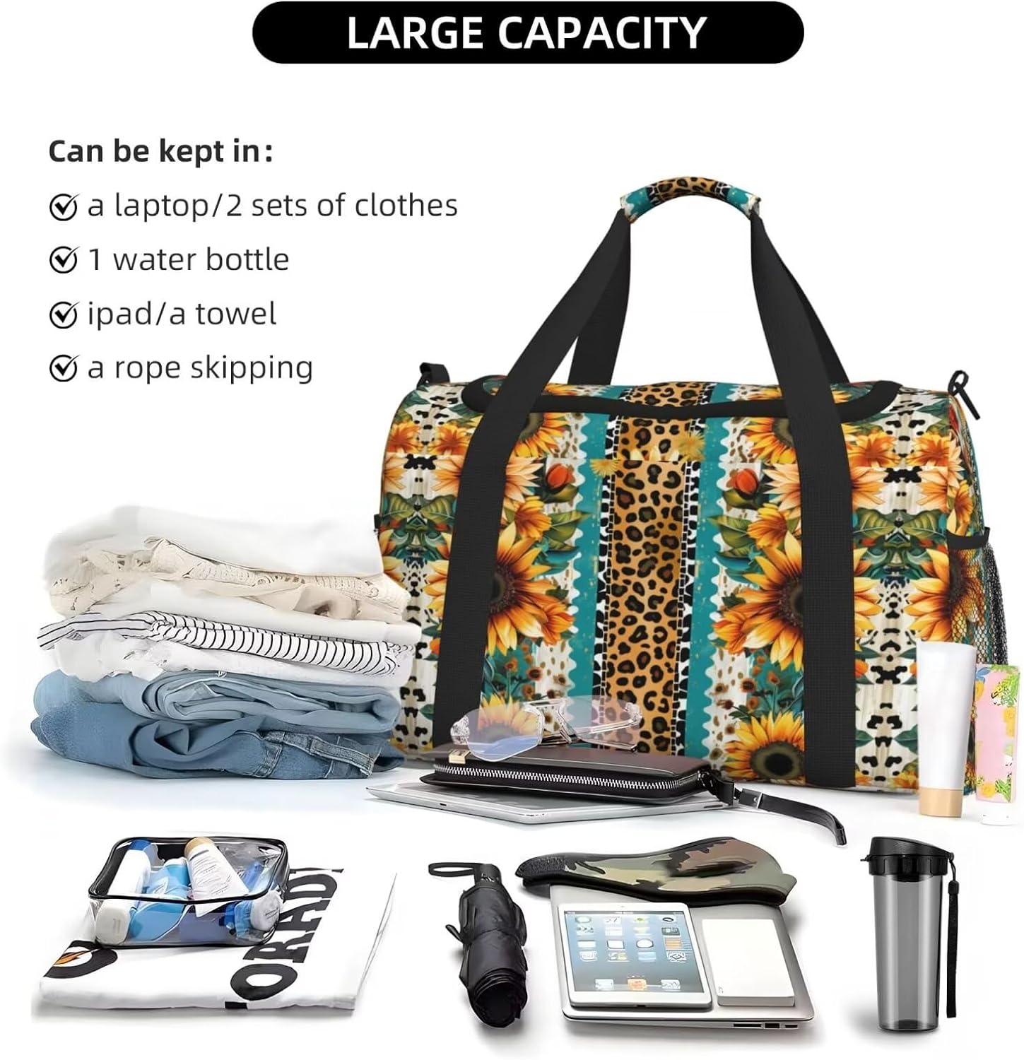 Sleek & Stylish Design: This versatile duffel bag combines style with practicality. Crafted from tough twill fabric, its sleek, modern design is perfect for a variety of occasions—from weekend trips and gym visits to business travel and outdoor adventures. The spacious main compartment easily stores clothes, electronics, and everyday essentials, while multiple pockets keep your belongings organized. Whether you're heading to the gym, going on a weekend getaway, or traveling for work,sports game, fishing trip, or outdoor adventure. this travel duffel bag is the ideal companion for your active lifestyle. Reliable & Functional: The thoughtful handle cover prevents hand strain, ensuring a comfortable journey whether you're carrying it by hand or using the adjustable shoulder strap (70-120cm). With a carry handle (approximately 65cm) and two reinforced side webbing straps, this bag offers easy portability for all your trips. Plus, the two side mesh pockets are perfect for quick-access items. Ample Storage Capacity: Its versatile design meets your storage needs for travel, weekend getaways, or everyday use. Built to Last: Lightweight yet sturdy, this bag is made from high-quality materials designed to stand the test of time. It's the perfect choice for a variety of activities such as sports, tennis, fishing, hunting, or other outdoor pursuits. Hand wash only, do not machine wash, iron, or bleach to ensure long-lasting durability. Versatile Whether you're exploring a new city or running errands, this versatile travel bag offers ultimate convenience. The spacious interior provides ample room for your belongings, while multiple pockets help you stay organized. From weekend trips to daily commutes, this stylish and practical bag is designed to fit seamlessly into your on-the-go lifestyle.