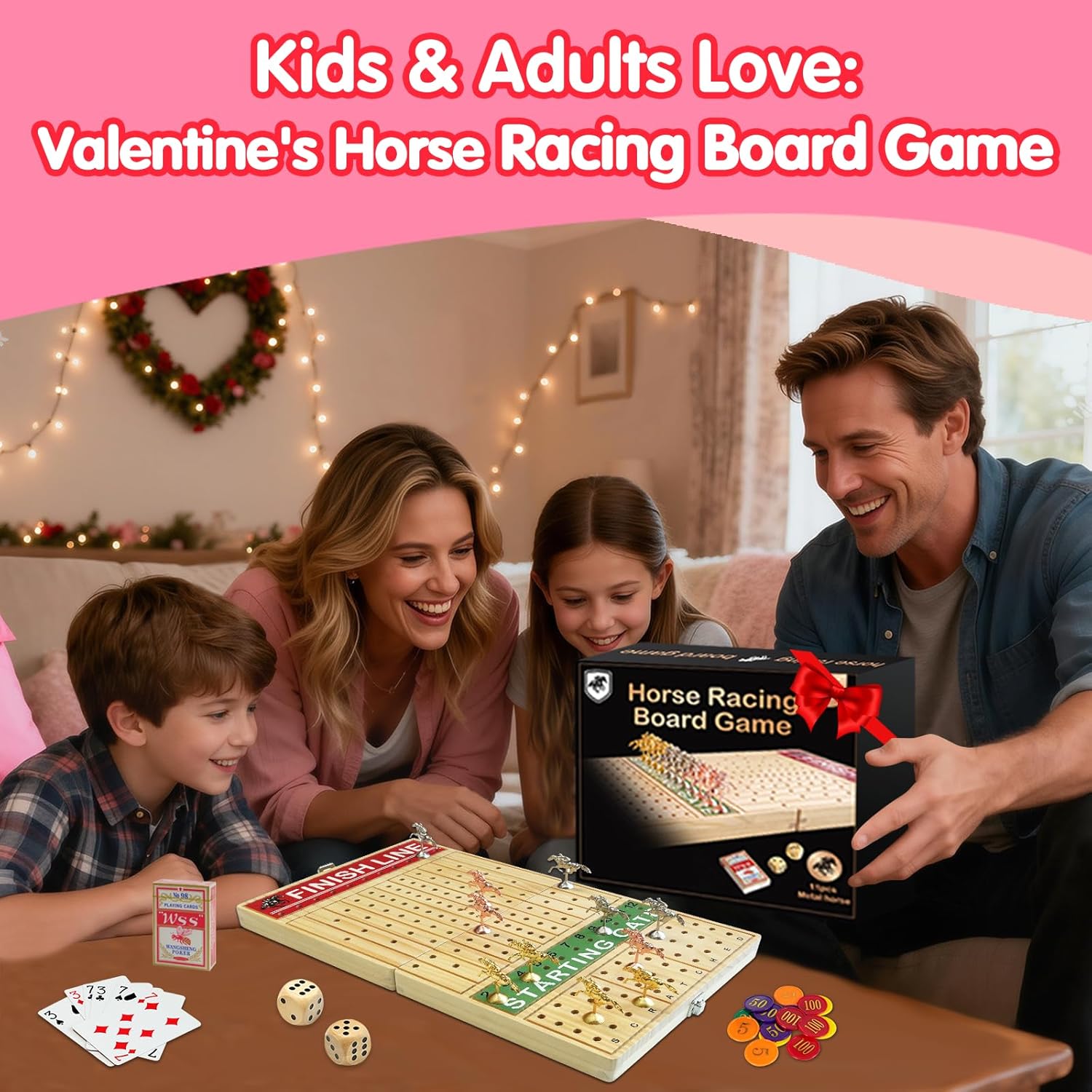 | Included Components | 1 Foldable Horse Race Board, 11 Metal Horses, 2 Wooden Dice, Cards, Poker Chips and 1 Instruction Manual |