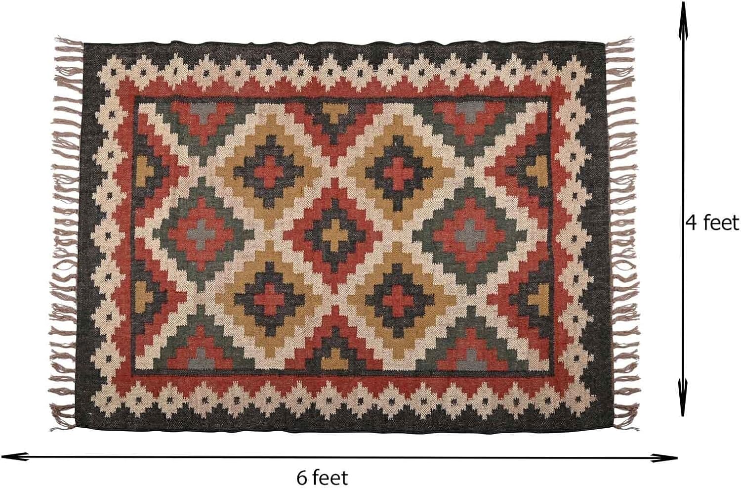 RugsJaipurIndia Square Kilim Rug, a handwoven masterpiece made from a blend of wool and jute. This durable and stylish braided Dhurrie rug is perfect for adding a rustic, farmhouse charm to your living room, kitchen, or entryway. Whether you need an area rug or a runner, this kilim design brings warmth and a natural look to any space.★★★★RugsJaipurIndia highlights that the rug comes from Jaipur, India, a place known for making quality, handwoven rugs. It suggests that the rug is made with traditional craftsmanship and skill, adding to its value and uniqueness.★★★★