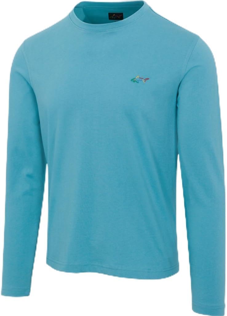 Greg Norman Men’s Crewneck Soft Cotton Long Sleeve Shark Tee. Crafted from premium, ultra-soft cotton, this long-sleeve shirt delivers a relaxed fit that feels as good as it looks. The classic crewneck design makes it a versatile staple—perfect for layering on cool days or wearing on its own for a clean, casual look.
