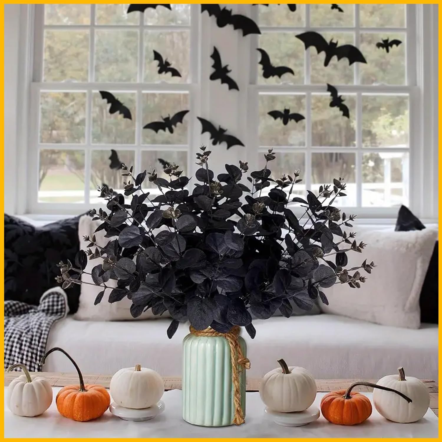 Specifications: Artificial Black Eucalyptus Colour: Black Material: Silk Flower + Plastic Length: 34 cm Package Contents: 6 Pack Artificial Black Eucalyptus These beautiful and realistic black artificial flowers add a touch of mysterious and elegant natural charm to modern spaces.