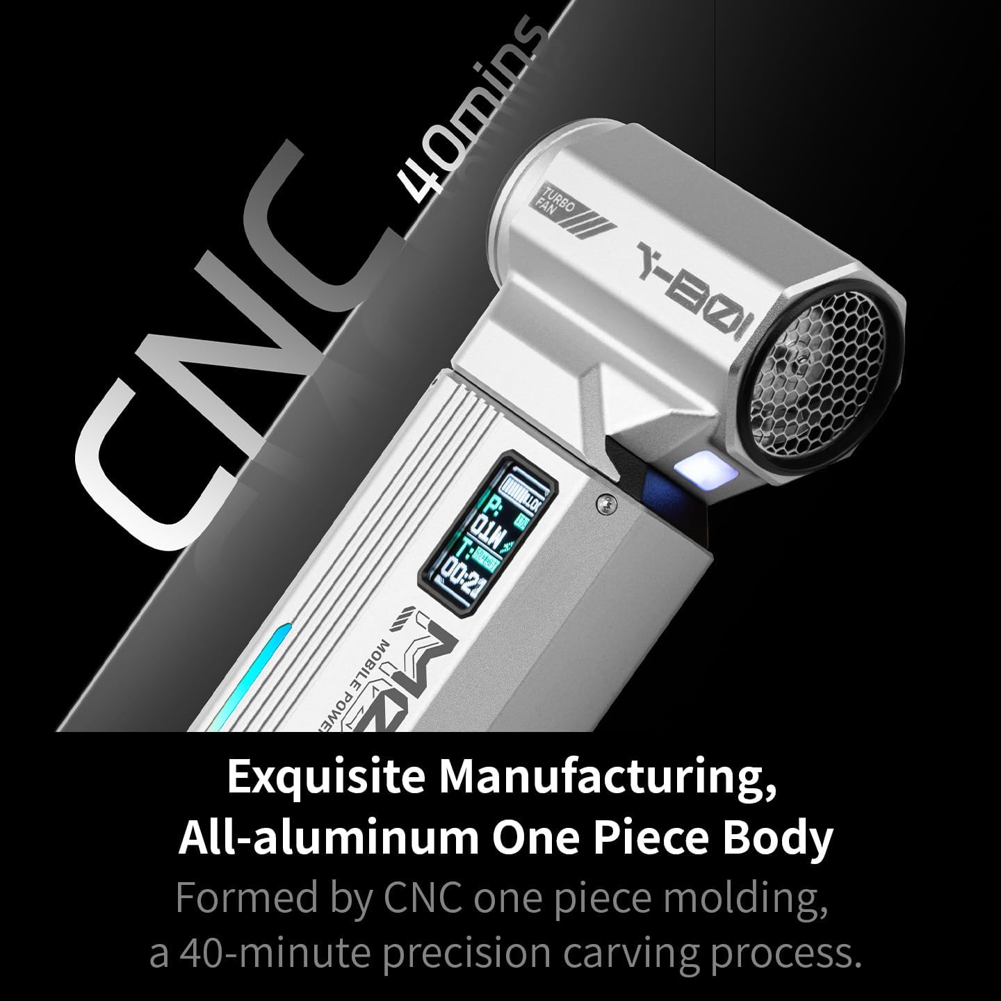 Halo – The Modular Handheld Turbo Fan Reinvented in Metal Meet Halo, the world’s first turbo fan with a full aluminum body — a bold leap ahead of the competition. While others rely on plastic, Halo is precision-machined from metal, delivering unmatched durability, heat resistance, and a premium aesthetic that commands attention. Driven by a 90,000 RPM high-performance motor, Halo isn’t just powerful — it’s engineered for enthusiasts, creators, and pros who demand serious airflow on demand. What truly sets Halo apart is its modular design and smart functionality: * Use the battery and fan together for full portability, or power the fan directly via PD charger when you want to go lightweight. * The fan module can mount on any standard tripod, turning Halo into a hands-free airflow solution for any setup — filming, soldering, camping, you name it. And it’s not just about performance — Halo is smart: * A custom display and user interface shows real-time battery stats and system info at a glance. * Personalize your experience with adjustable LED breathing lights and custom UI color themes — because power should also look the part. This isn’t just a fan. It’s Halo — where industrial design meets intelligent performance. Metal. Modular. Intelligent. Personal. Halo blows everything else away.