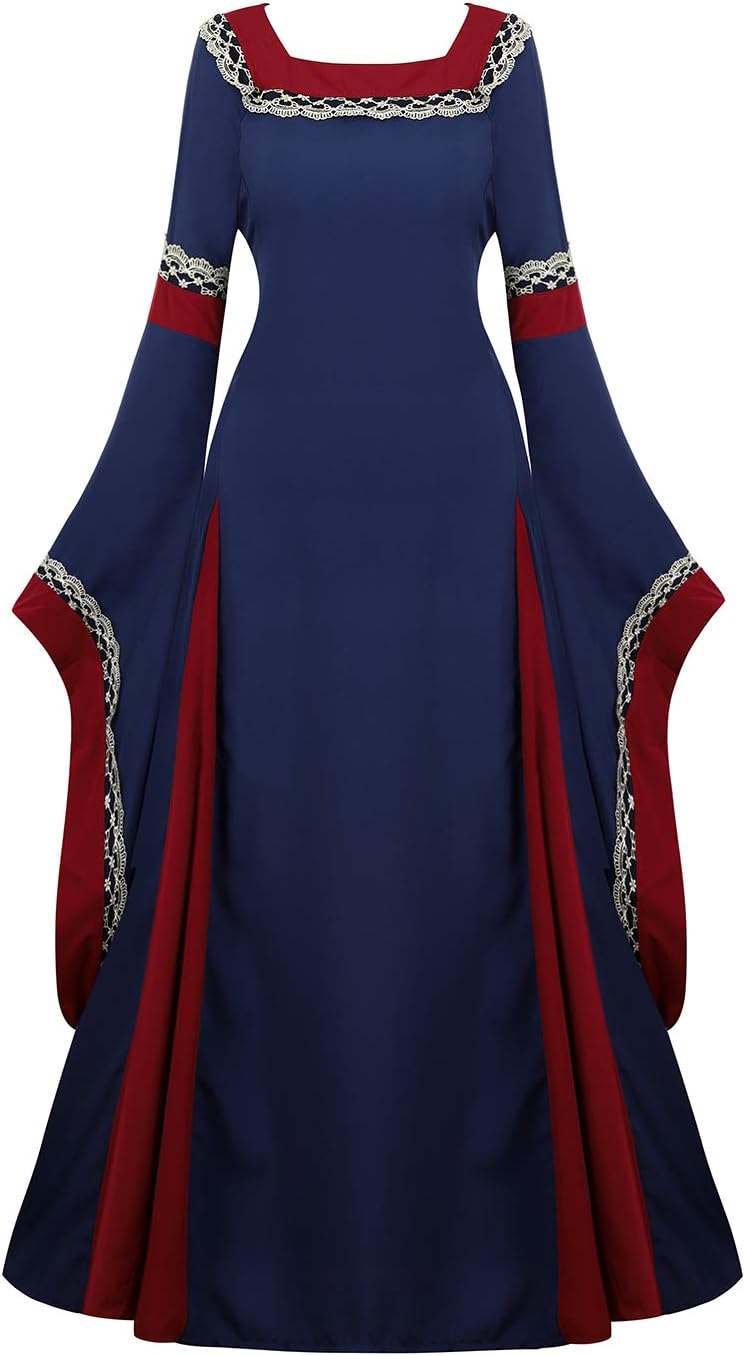 Womens Renaissance Irish Dress Overdress Medieval Off the Shoulder Boho Dress Set Cosplay Costume Chemise and Over Dress Product Dscriptions: Type:Womens Renaissance Irish Dress Size:S M L XL 2XL US size. Color:Black,White,Wine Red,Navy,Purple,Blue. Material: Polyester fiber, soft to touch and comfortable to wearing Occasion: Medieval Renaissance Irish Dress Great for Renaissance festival, Marco Polo-style party, Victorian event, Steampunk festival, Cosplay, Halloween, theatrical show, theme party,peasant Wench & Merchant Costumes for Faires! Product Features: -Medieval Renaissance Long Dress for Women, Vintage Masquerade Party Dress. -Front lace-up, Adjustable through the shoulders for a better under arm fit. -Ruffled neckline, maybe worn over or off the shoulders. -Ruffled Short Sleeve, Off the Shoulder, Floor Length, flared flounced large hem. -The elastic waist suitable for your body perfectly. Product Includes: 1*Womens Renaissance Irish Dress