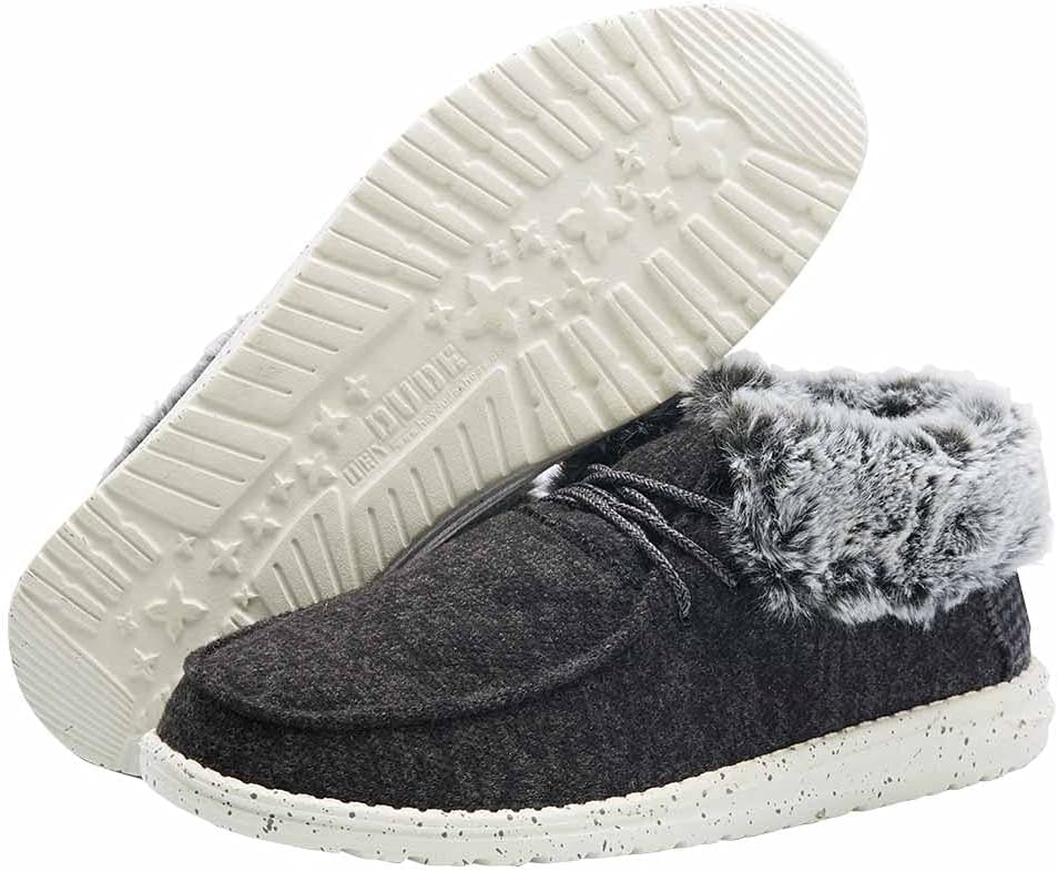 Always be in relax mode with the Hey Dude Britt boot. Durable canvas uppers feature a foldable cuff with faux fur for warmth and comfort. Lace-up design and Flex & Fold Technology. Anatomical, removable memory foam insole. Lightweight synthetic outsole. Machine washable.