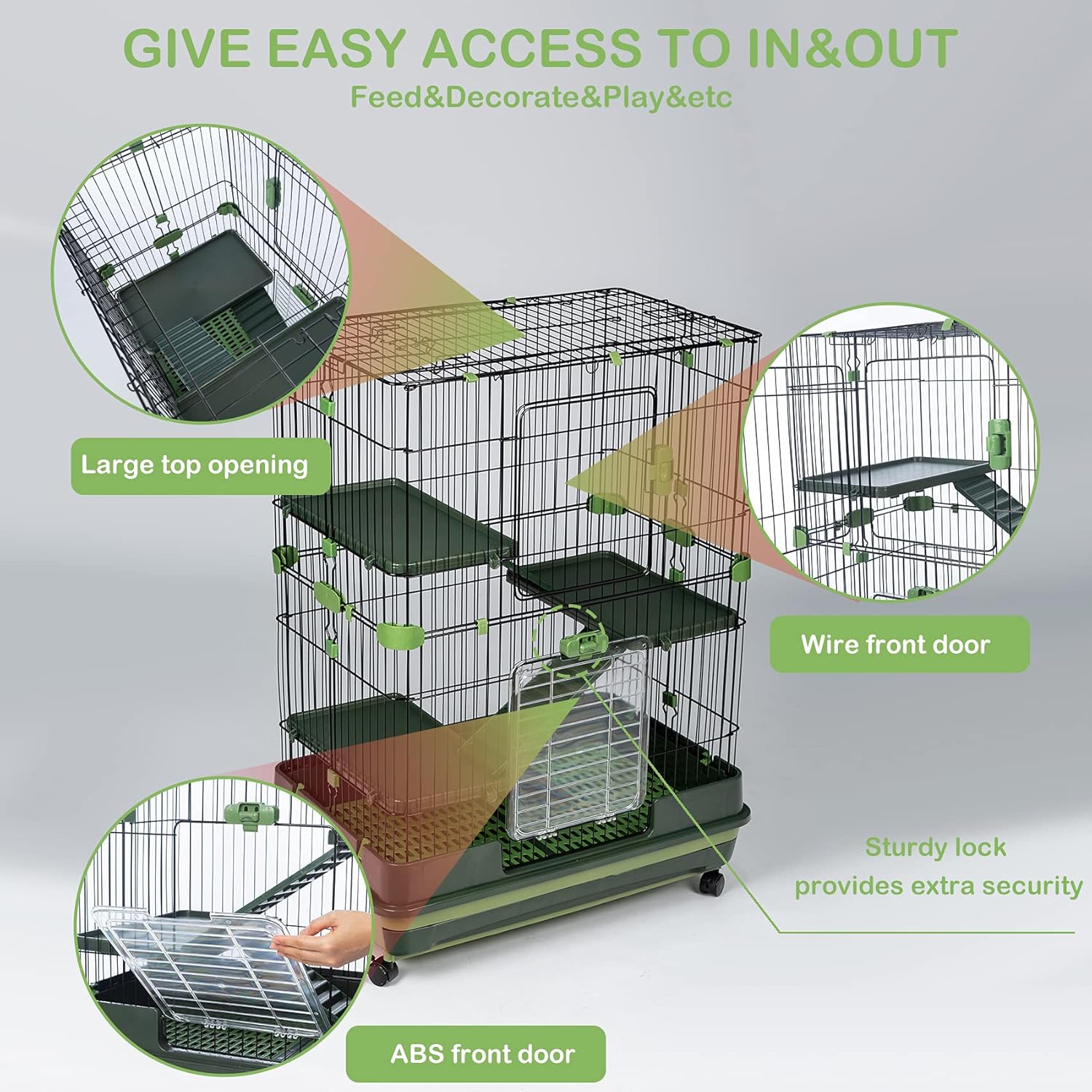 Specifications: -Item Name: Small Animal Cage -Material: ABS+PP+Steel -Color:GREEN -Size: Overall: 81*110*53cm/32"×43.3"×21" Bar spacing: 2.1cm/0.8" -N.W: Approx.13.4kg/29.5lbs -G.W: Approx. 15.0kg/32.85lbs