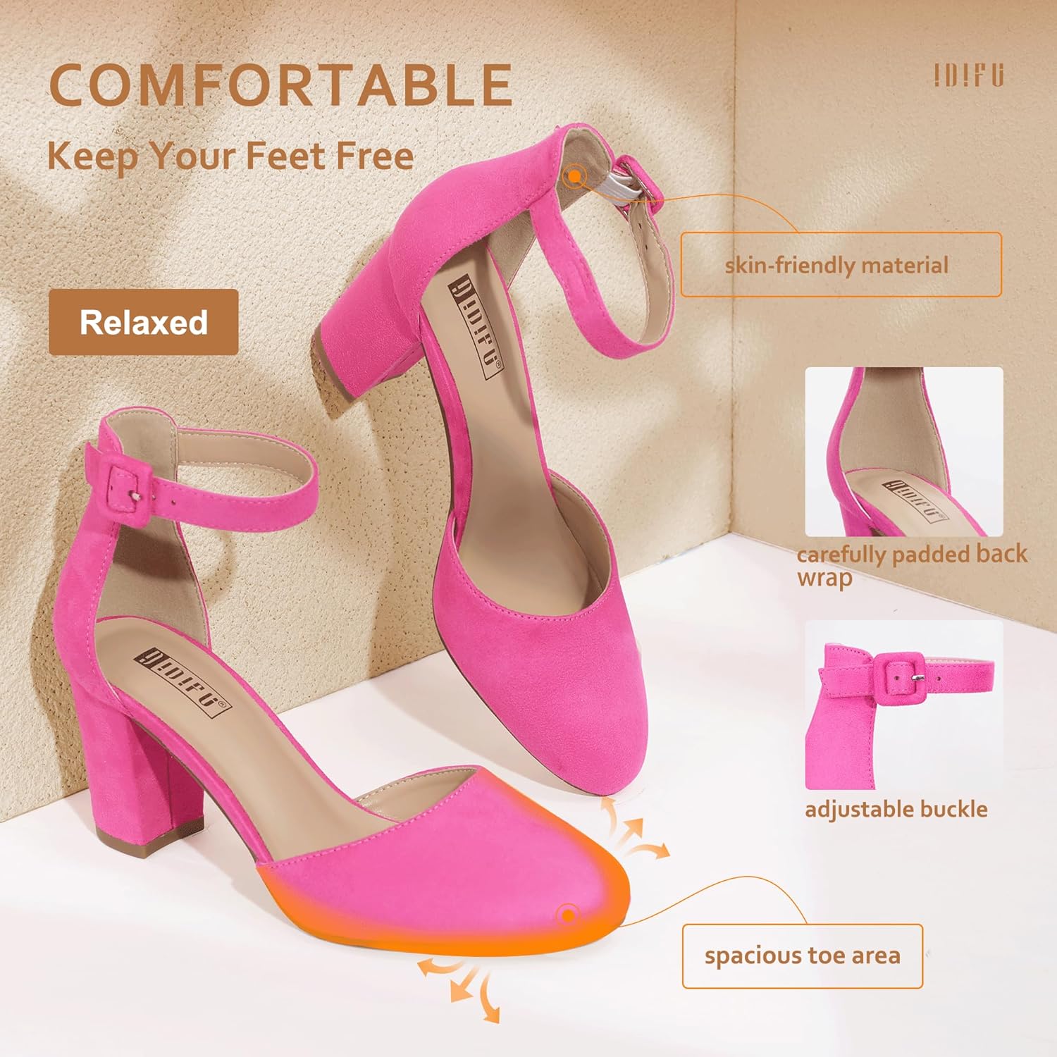 | Special Features | 3 inch heels, ankle strap heels, closed toe heels, comfortable heels for women, cushioning |