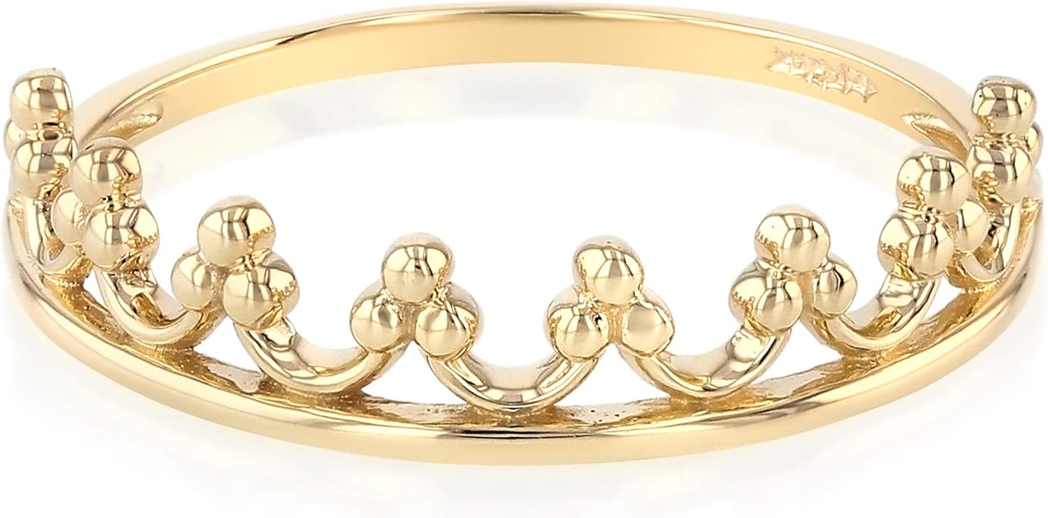 Explore the collection of IOKA Jewelry with pieces made using high quality materials which are beautifully handcrafted using genuine 14K gold and the highest quality cubic zirconia (CZ) stones. Our inventory boasts stunning pieces at affordable prices without compromise. ITEM SPECIFICATIONS:Brand: IokaModel No: IG-01-200-2780Type: Stackable-Rings/Stackable Crown RingStone Type: N/AMain Stone Shape: N/ACenter Stone Shape in MM: N/ATotal Stones: N/AMetal: 14K Solid Gold (Not Gold Plated)Average Weight: 1.98 GRGender: GirlsSize : Various Sizes.Good for: Wedding Band, Engagement, Promise, Proposal, Anniversary Ring, Gift, and Fashion.SHIPPING CONTENTS:14K Gold RingJewelry Ring BoxAFTER SALES SERVICES:Limited Lifetime Warranty: Complimentary repair service on manufacturing defects.Satisfaction Guaranteed: 30 Day return policy for all unworn items.Best in Class Customer Service: Business hours from 7am PT to 8pm PT every day, you can expect a response within 2 hours of emailing us. Outside of business hours, we will return your message within 8 hours.