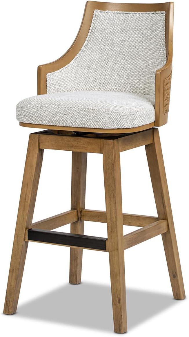 Introducing the exceptional Bahama Dining Stool Collection by Jennifer Taylor Home, meticulously designed to bring a coastal or modern farmhouse charm to your space. With a natural wood base that exudes rustic elegance and a cane rattan back accent, this counter stool combines style and comfort effortlessly. The recessed arms provide additional support, making it the perfect seat for long conversations or cozy gatherings. Its swivel feature adds functionality, allowing you to easily turn and engage with your surroundings. Elevate your home with the coastal breeziness or farmhouse allure, and create a welcoming and stylish atmosphere that will leave your guests in awe.