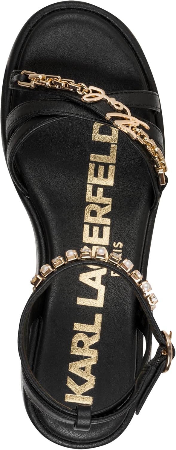 This Karl Lagerfeld Paris Women's Shoes is a Wedge Adjustable Strap Pearl & Jewel Embellishments Sandal