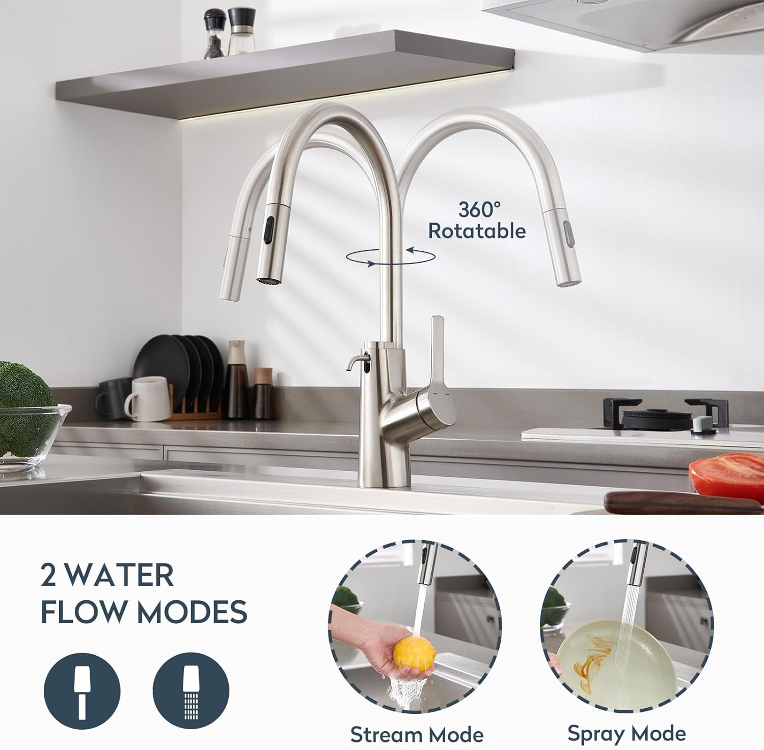 | Additional Features | 360 Swivel, Built-In Soap Dispenser, Pull Down Sprayer |