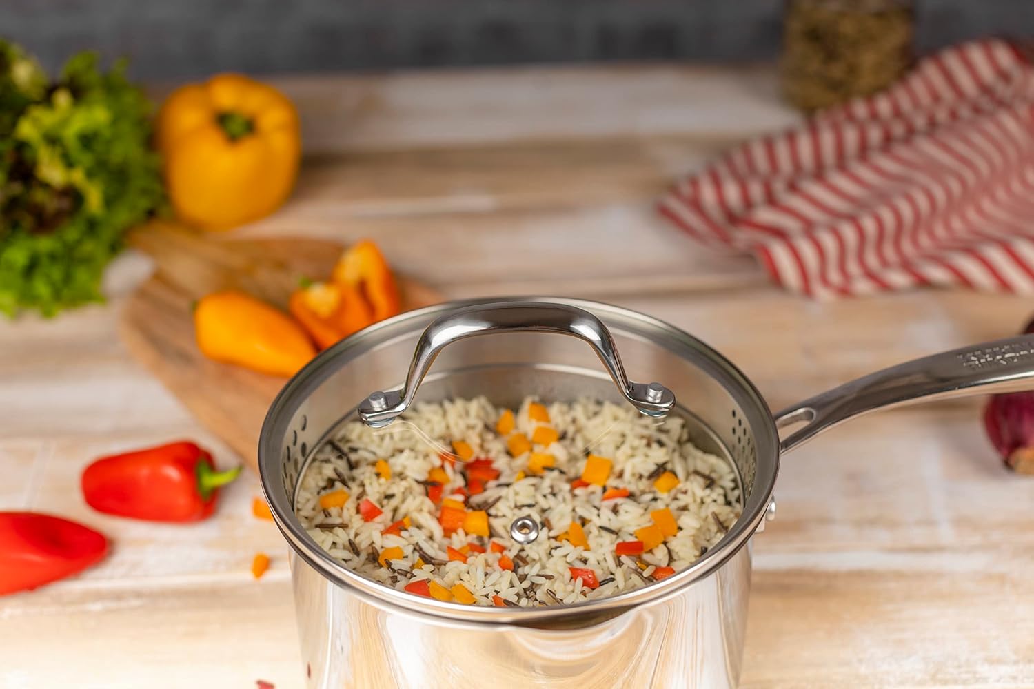 Use and CareFor normal soiling use ordinary detergentFor intensive soiling, scale and/or discoloration use a chromium steel cleaner - e.g. SWISS CLEANERThe pot's surface can be damaged with abrasive cleaners and dishwashersDishwasher suitable, washing by hand is recommendedIf washed regularly in the dishwasher, synthetic fittings may lose their shine and aluminium may oxidise or corrodeNever remove food stuck to the pan with sharp objects such as knives, steel wool or scourers (scratches)Limescale can also be easily removed with vinegar or lemon juice