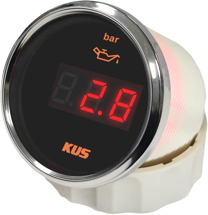 Key Features: -Be suitable for all kinds of pressure sensors, and display the value of oil pressure-Use moving-magnet principle to drive the needle, featuring good endurance and anti-vibration. -Operating temperature: -40°C ~+85°C -Protection rank : IP67. Technical Data: -Fixing dimension: 52mm(2") -Indicating Range:0-10bar-Working Voltage: 12V/24V -Choice between red and yellow backlight -Operation mode: LCD display, stepper motor -Protection grade is IP67, the whole body is completely waterproof; -Excellent anti-fogging function; -316 Stainless steel bezel with curved glass; -Convenient Installation by multi-plug socket connecting way; Package Includes: 1x Oil Pressure Gauge 1x Multi-plug socket 1x Installation Instruction
