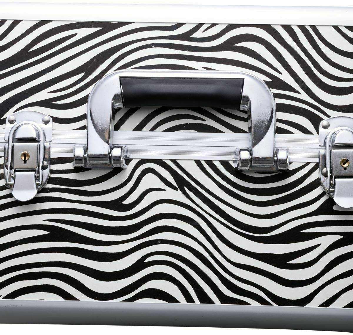 LKOP Specifications: Color: Zebra Material: Aluminum Fram And Reinforced Steel Corners Black Velvet Insulate Lined Wood Extendible Trays Overall Makeup Case Dimensi