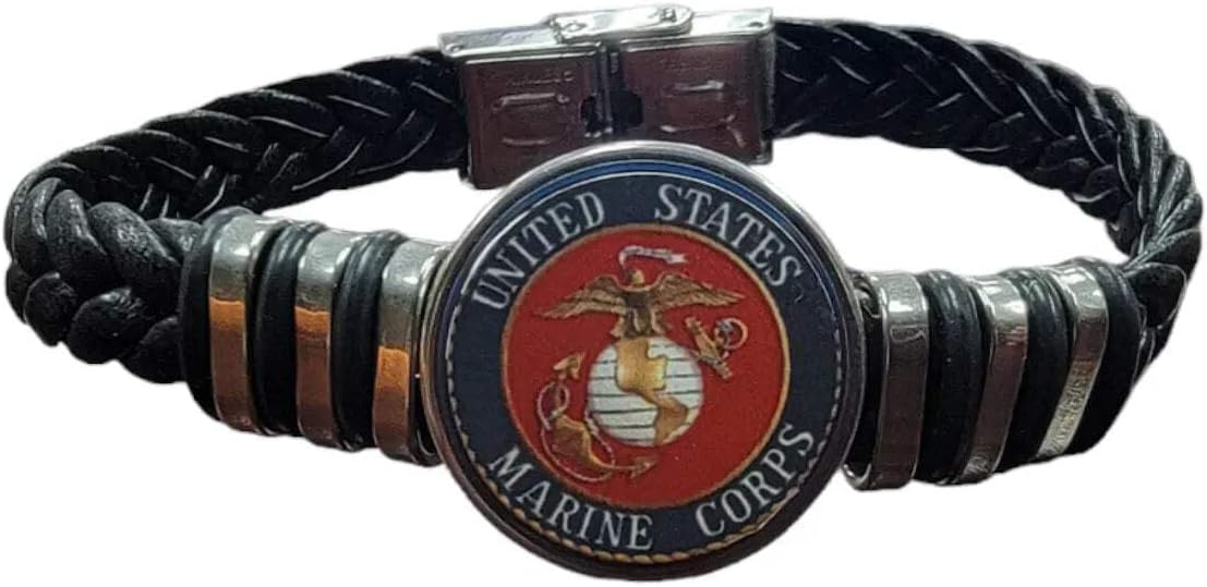 This officially licensed Marine Corps black braided leather bracelet with stainless steel accents is the perfect way to show your military pride. Choose from the Eagle Globe Anchor, Marine Corps Black Seal, Marine Corps Green Seal or Marine Seal symbol. This bracelet comes in various sizes to fit any wrist. It comes boxed, making it the perfect gift for any military man or women.Features:Officially licensed Marine Corps productBlack braided leather braceletStainless steel accentsChoose from the Eagle Globe Anchor, Marine Corps Black Seal, Marine Corps Green Seal or Marine Seal symbolComes in various sizes to fit any wristComes boxedBenefits:Show your military prideMake a great gift for any MarineMade with high-quality materialsDurable and long-lastingAdjustable to fit most wristsComes boxed, making it a thoughtful gift