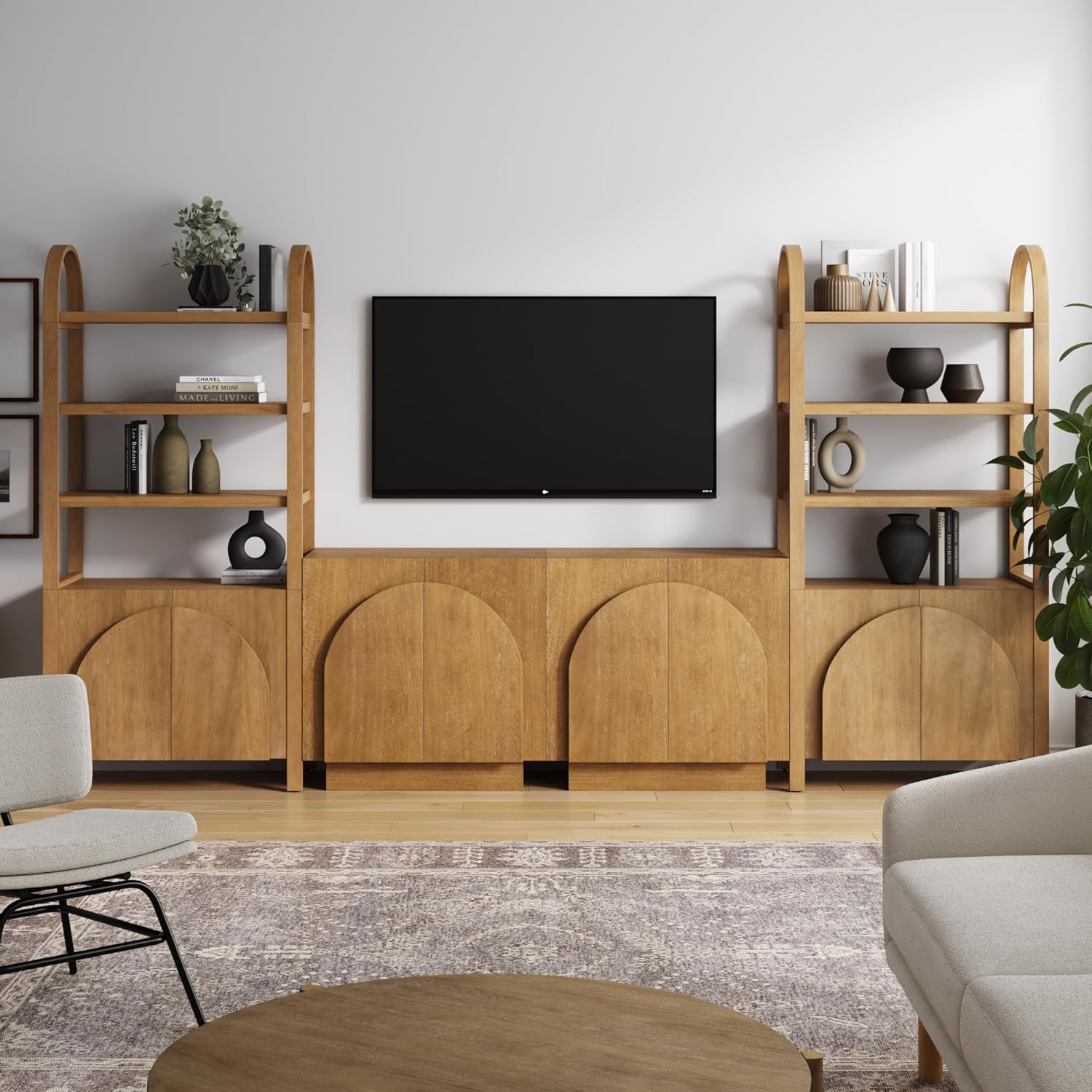 | Item Type Name | Mid-Century Modern Credenza, Sideboard Buffet, Living Room Wood Storage Cabinet with Arched Cabinet Doors |