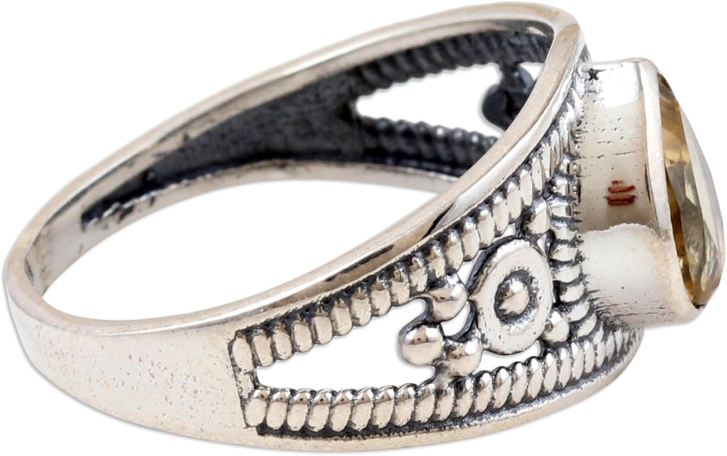 Novica works together with talented artists, artisans, and designers around the world to produce stunning, keepsake handmade treasures. Our mantra is to Spread Happiness, so rest assured - we’ll do everything we possibly can to ensure you’re a happy customer!About this item: A charming faceted citrine stone is the centerpiece of Indian artisan Bhavya Jain's newest design. Knowing that the yellow jewel symbolizes success, the artisan creates a sterling silver cocktail ring in a combination finish, with traditional motifs enhancing the gem....