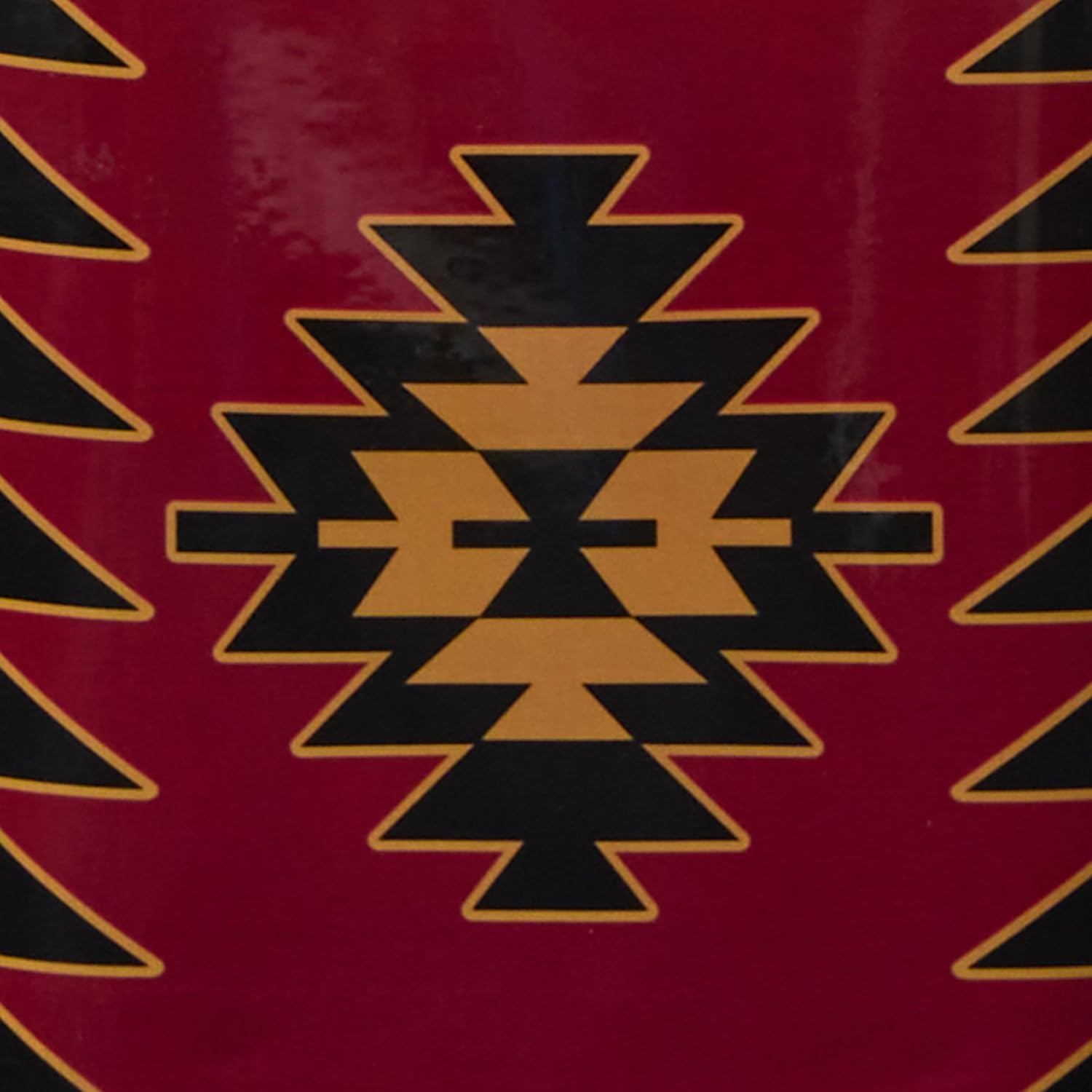 Full of farmhouse charm, this patterned metal table lamp brings rustic character to your everyday kitchen decor from its geometric Southwestern design in red and black hues. Creates a charming ambient accent light to utilize as a warm and cozy bedroom end table illumination, tabletop accent, reading light, or dresser display. Adorned with a solid black lampshade for quick and easy use; seamlessly diffusing any light into a soft, ambient glow for an overall cozy room atmosphere. Simply requires a lightbulb, bulb not included.