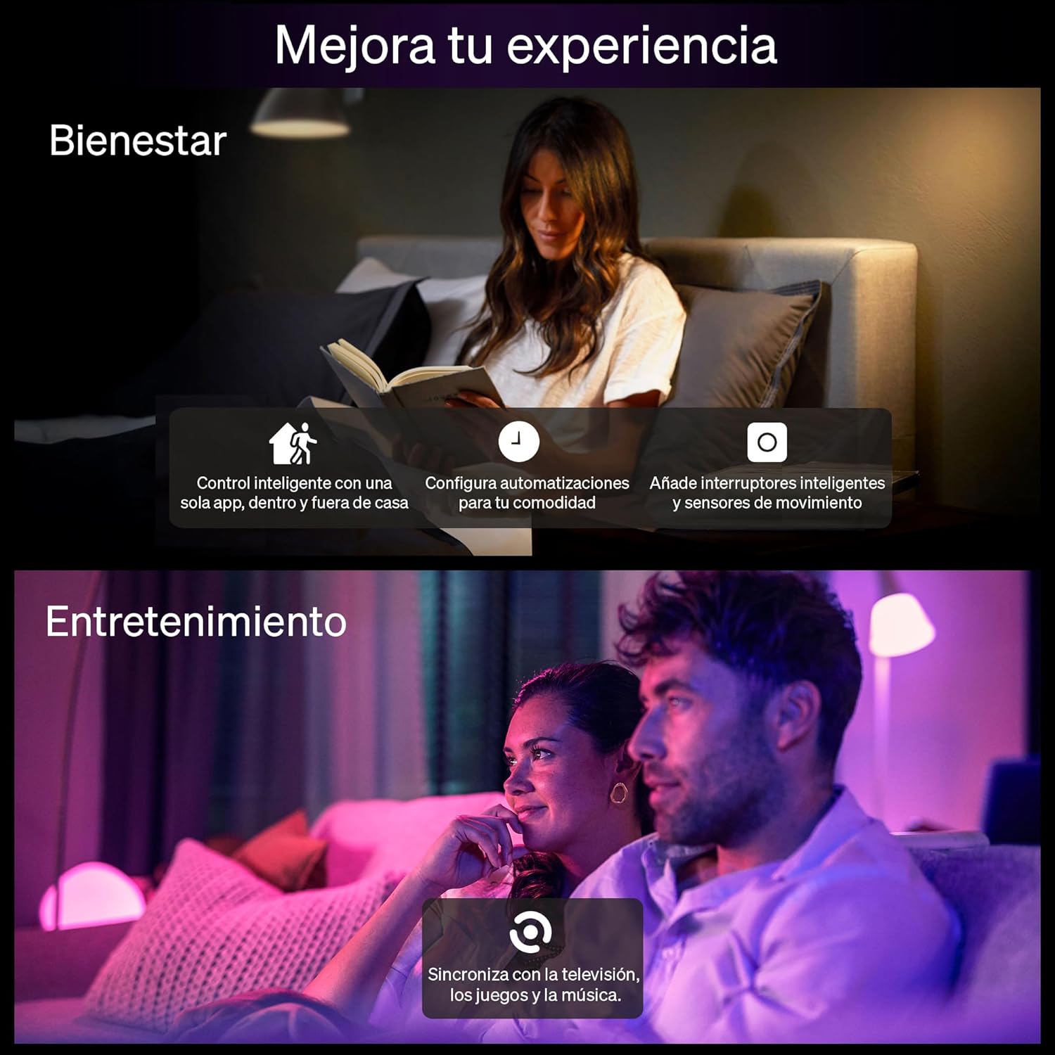 Step into the world of smart lighting with this PHILIPS Hue Essential Starter Kit: Hue Bridge, 2 Essential E26 Smart BulbsFeaturing two full color and tunable white bulbs that you can easily adjust from warm and cozy to cool white light. Set the perfect mood with smooth dimming, millions of colors, and a library of light scenes designed by our experts—or create your own with the color changing bulbs!Easy smart lighting Connect to the included Hue Bridge to take advantage of the endless list of features. Control using your voice, the app, or any smart home accessory. Dim the lights easily with the Hue app or manually using the switches.Key Benefits: Two Essential E26 Base Smart BulbOne Hue Bridge16 Million color optionsDimmable LED light bulbsWorks with Alexa, Google Assistant, Samsung SmartThings, Apple Home