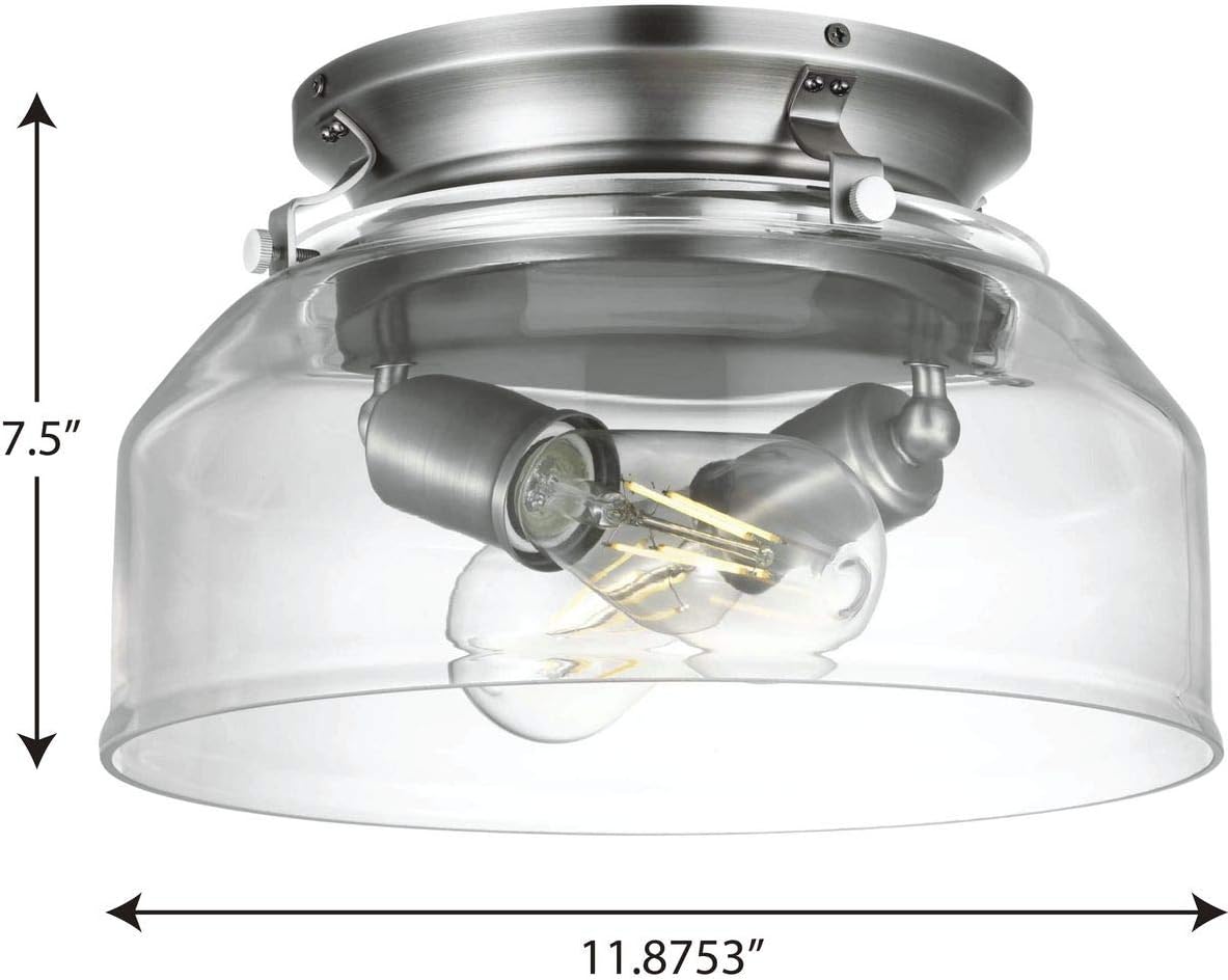 Progress Lighting Clear Glass Ceiling Fan Light Kit for Springer Collection 52 Inch Ceiling Fans, Includes 2 Light Bulbs, Antique Nickel