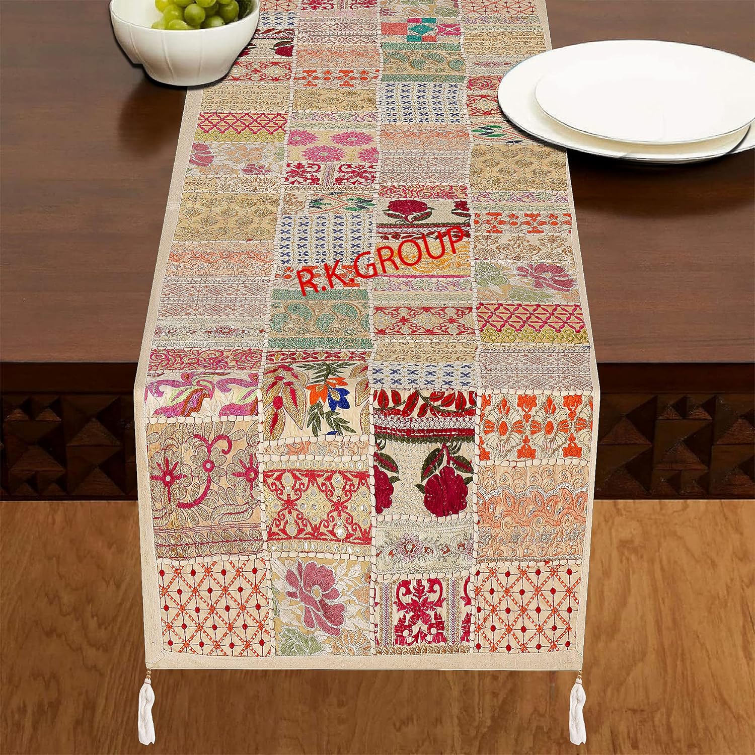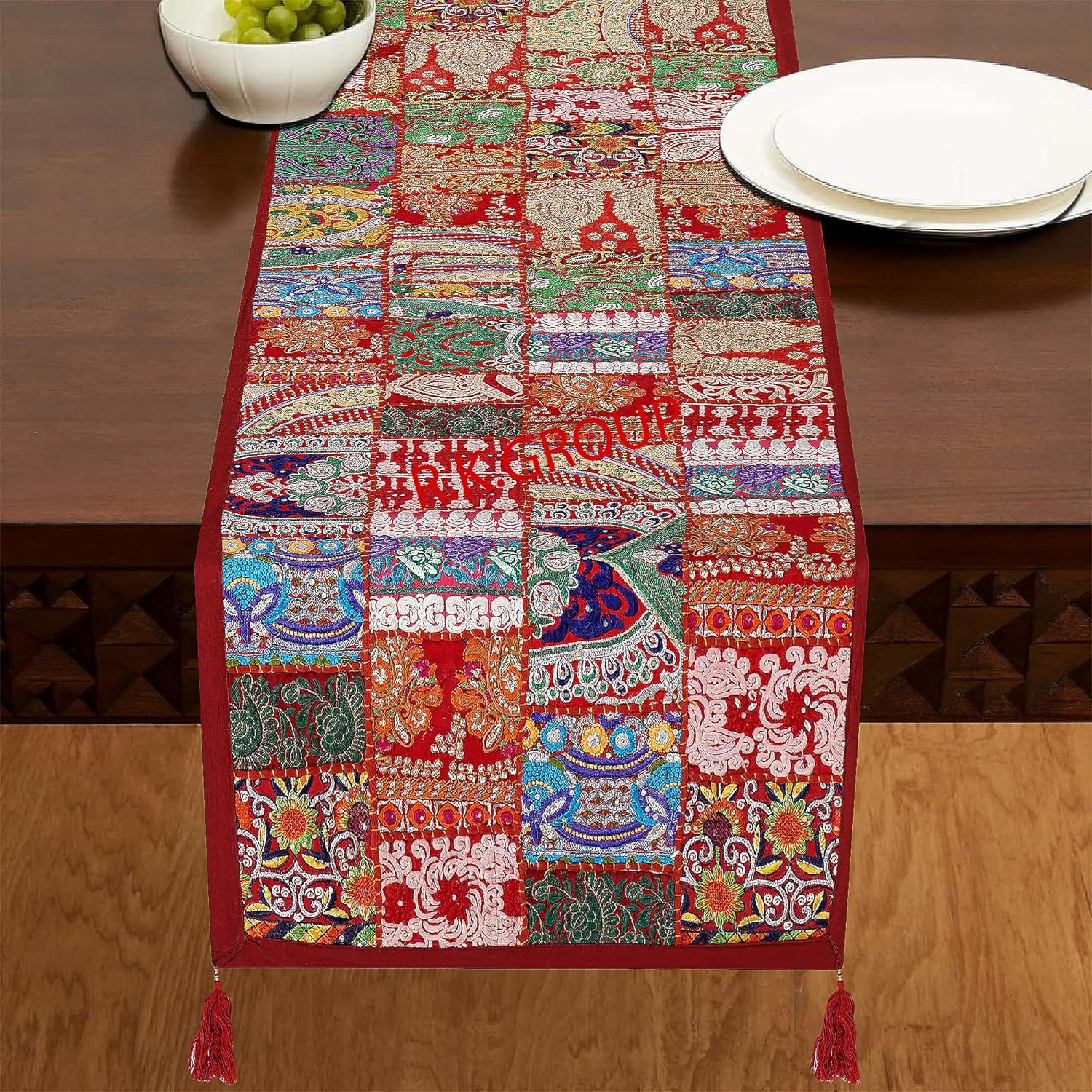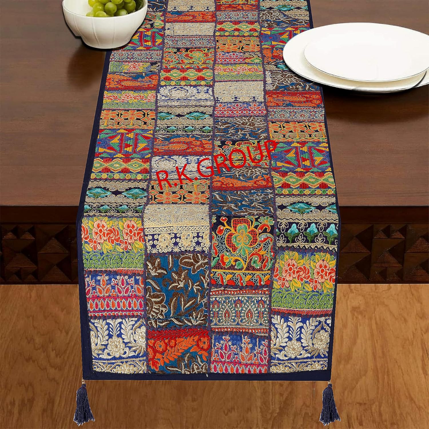 Floral vines illuminate their way through fields of flowers, embroidered by hand. Enhanced with multicolored patchwork, glittering sequins and bead work celebrate spring enchantment. These exuberant colors of tribal patchwork are from nomadic Banjara region around Rajasthan, India. Lined in yellow and blue the cotton runner is individually crafted, thus colors and motifs can vary slightly. Can be used as a runner, tapestry or hanging to brighten the mood around the house. #hashtag: Yoga Studio, Indian Table Decoration Gypsy, Room, Yoga Spiritual, Buddhist, Handmade, Fair Trade, Boho, Murals, woven handcrafted flower fabric natural party wedding events banquet Kitchen Living Room Bedroom Studio Office linen square rectangular canvas bridal birthday Large Bedding Nature Decorative Collage Dorm Living Room Bedroom Yoga Bright Psychedelic table cloth yoga studio gypsy forest animal monkey flower birds elephant throw Queen Twin Medium Multi color Indian Ethnic Tribal geometric dorm flower display textile bedroom nature medium tribal ethnic fair trade door printed pattern Backdrop Tribe Azure Fair Trade Floral Embroidered Colorful Cotton Tapestry Wall Hanging Decor Art Home Boho Bohemian Hipei