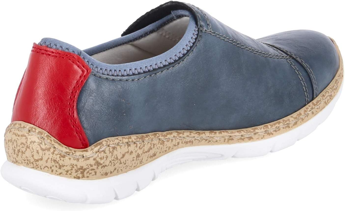 Wow factor! These blue Rieker slippers guarantee a heavenly wearing experience. The shoe is made in the stitching style, which makes it particularly robust and flexible. The elastic band is a great relief, especially when putting on and taking off. The lightweight and shock-absorbing sole with wedge heel ensures a comfortable walking feeling even during long periods of wear and the extra soft MemoSoft insole is another plus. All in all, the perfect mix of style and comfort