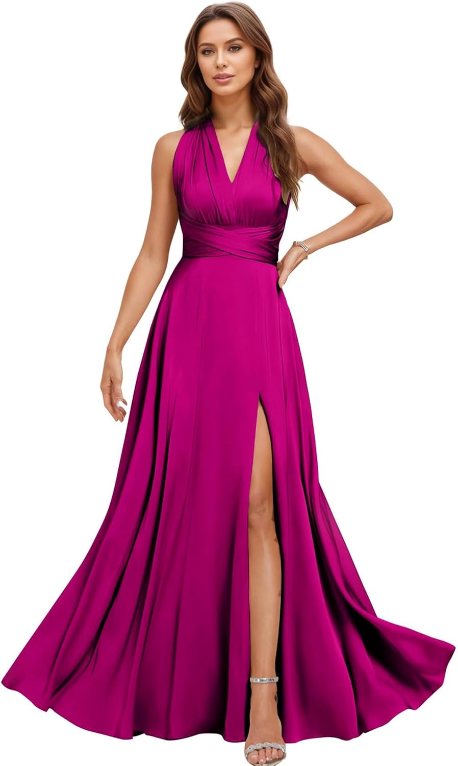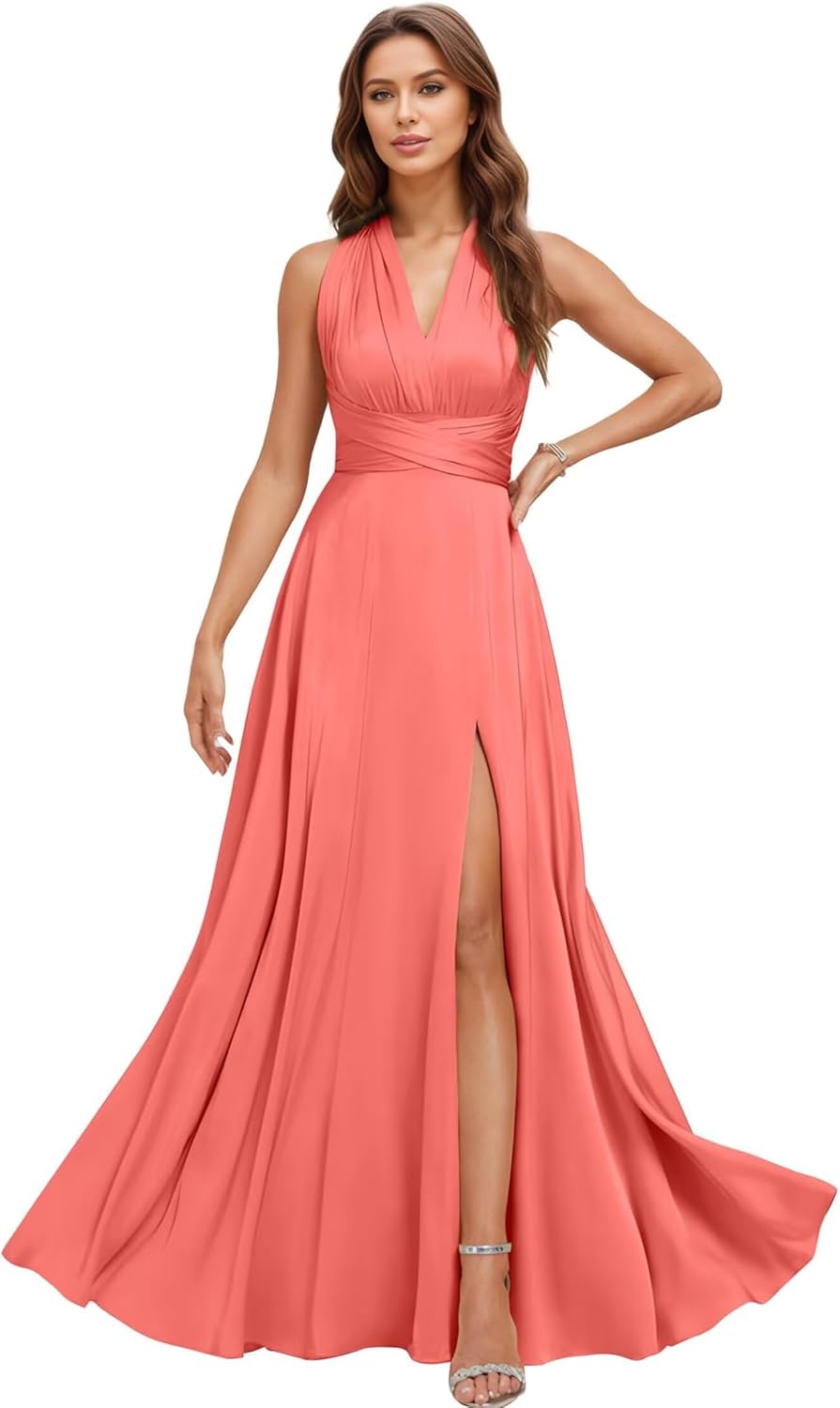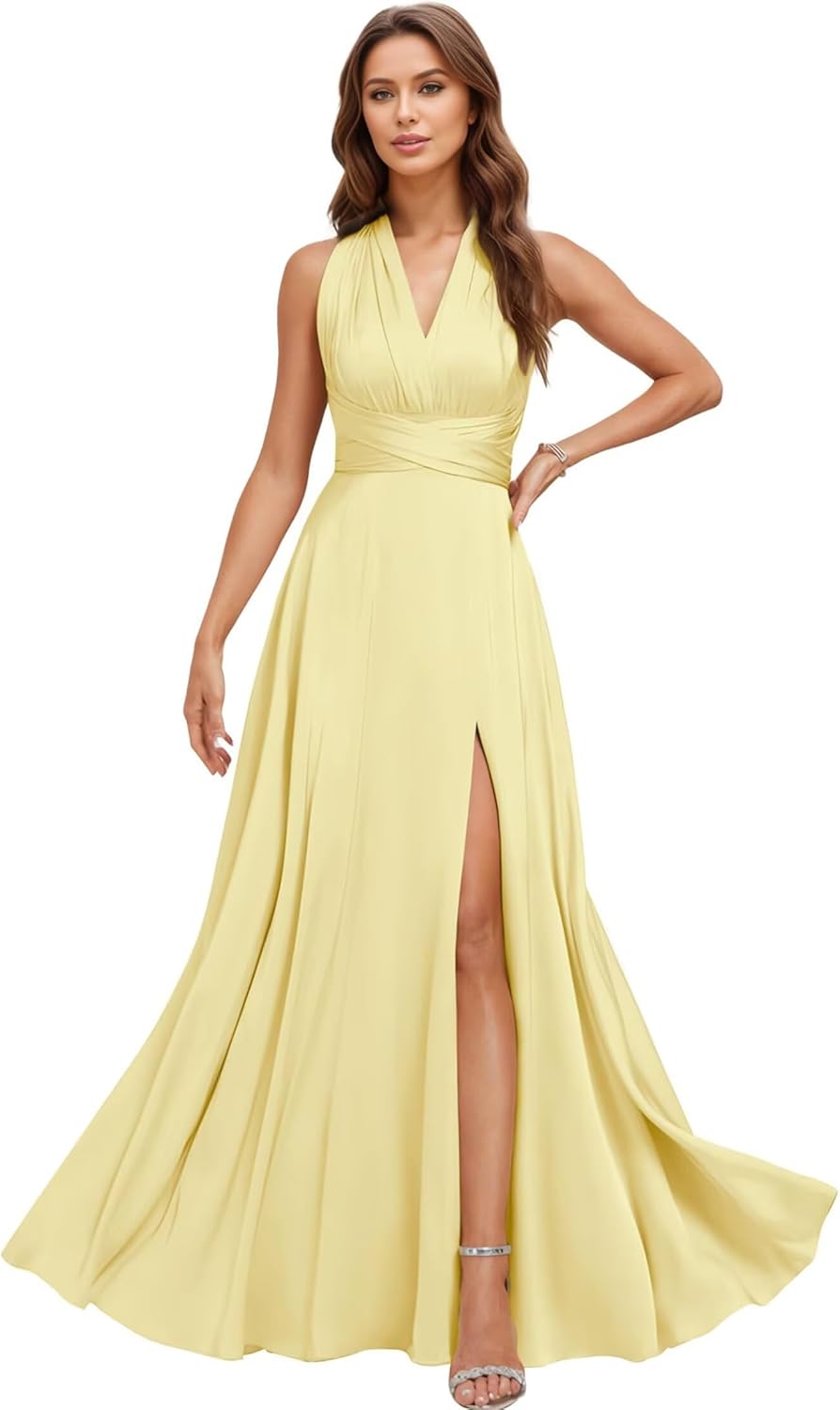 Welcome to TLTVQ.We're a professional manufacturer and seller of bridesmaid dresses, prom dresses, homecoming dresses, cocktail dresses, wedding party dresses, junior dresses, maternity dresses for photoshoot and many other formal party gowns.Product Information:Name:Satin Convertible Bridesmaid Dresses Long Multi-Way Infinity Dress with Adjustable Bandeau & Slit Plus Size Formal Evening Gown for Wedding, Prom, GuestFabric:SatinNeckline:V NeckSleeve:SleevelessLength:Floor LengthBack Design:Lace up BackSize Information:US0:Bust:32",Waist:25.5",Hips:35.5",Hollow to floor:57"US2:Bust:33.5",Waist:26",Hips:36.5",Hollow to floor:58"US4:Bust:34",Waist:27",Hips:37.5",Hollow to floor:58"US6:Bust:35",Waist:28",Hips:38.5",Hollow to floor:59"US8:Bust:36.5",Waist:29",Hips:39.5",Hollow to floor:59"US10:Bust:37.5",Waist:30.5",Hips:40",Hollow to floor:60"US12:Bust:38.5",Waist:31.5",Hips:42",Hollow to floor:60"US14:Bust:40",Waist: 33",Hips:43.5",Hollow to floor:61"Customized Dress:1.Full Bust _____inches2.Waist _____inches3.Hips _____inches4.Hollow to floor(without shoes) ___inches5.The height(with your high heel shoes) _____inches6.The date you need the dress_____